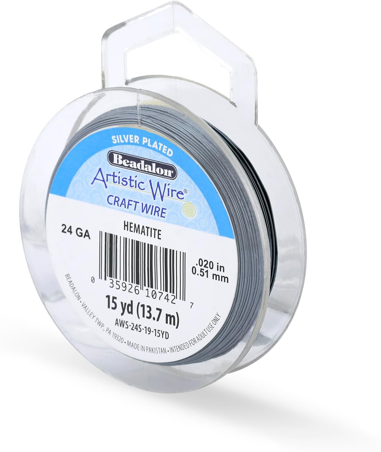 Artistic Wire, 24 Gauge Silver Plated Tarnish Resistant Colored Copper Craft Wire, Hematite, 15 yd