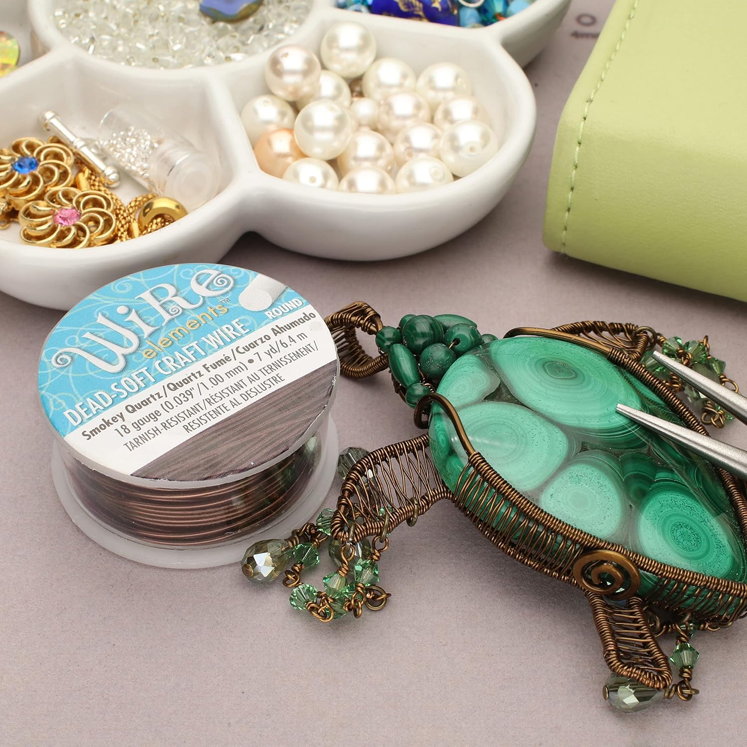 - COILS OF WIRE: This 18-gauge wire comes in a vibrant smoke quartz color, encased in a tarnish resistant coating, and measures 1mm (0.040 inches) in diameter. There is 7 yards of wire on this spool and comes with a clip to protect your wire when it is not in use.