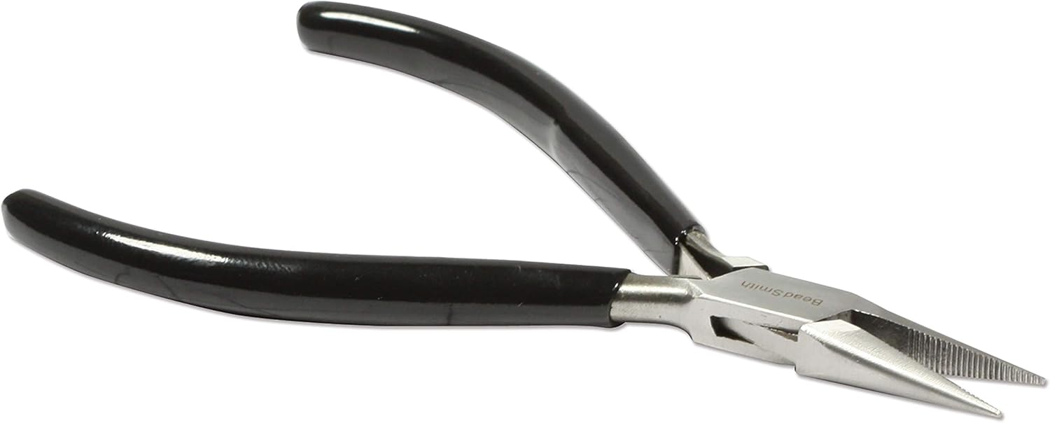 The Beadsmith Chain Nose Pliers – Serrated – Extra Fine Tips – 4.5 inches (114mm) – PVC Grip Handle with Double Leaf Springs – Jewelry Making Tool for Creating Bracelets, Earrings and Necklaces