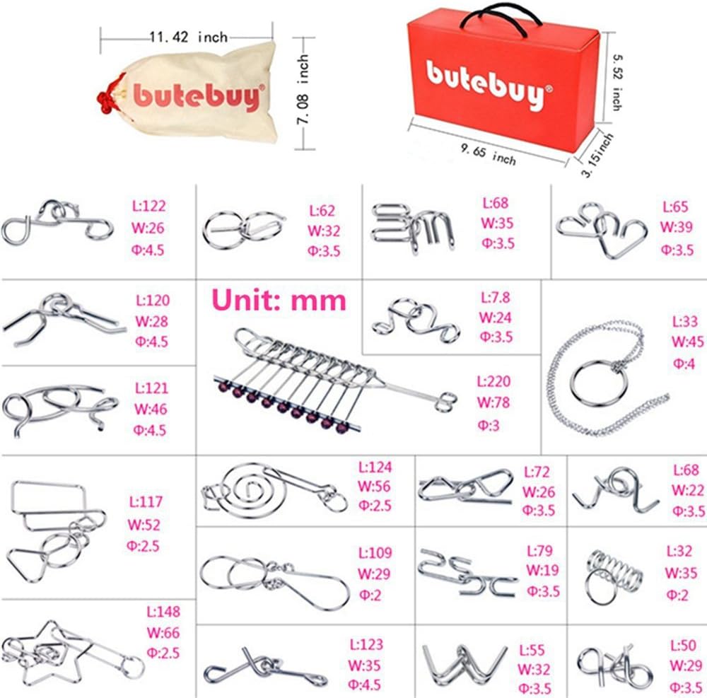 - 20 pack metal puzzles: 20 different styles metal brain teasers in 1 Paper Gift Box, throughout the metal mindbender puzzles providing a good amount of fun and challenge! Great metal brain teasers mind toys for adults. These metal puzzles set are perfect gift for all festivals, Birthday's Day& Halloween & Thanksgiving & Christmas's Day & New Year's Day & Valentineâs Day & Easterâs Day & Childrenâs day