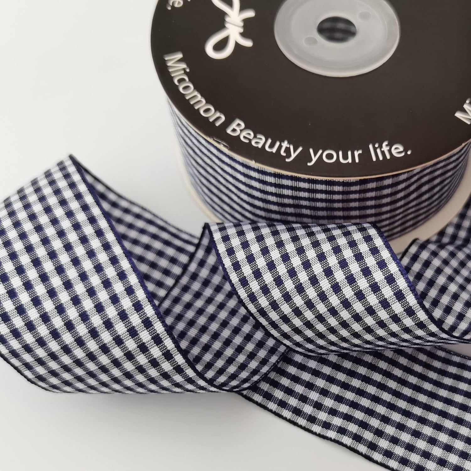 - Material of 100% polyester blue gingham ribbon