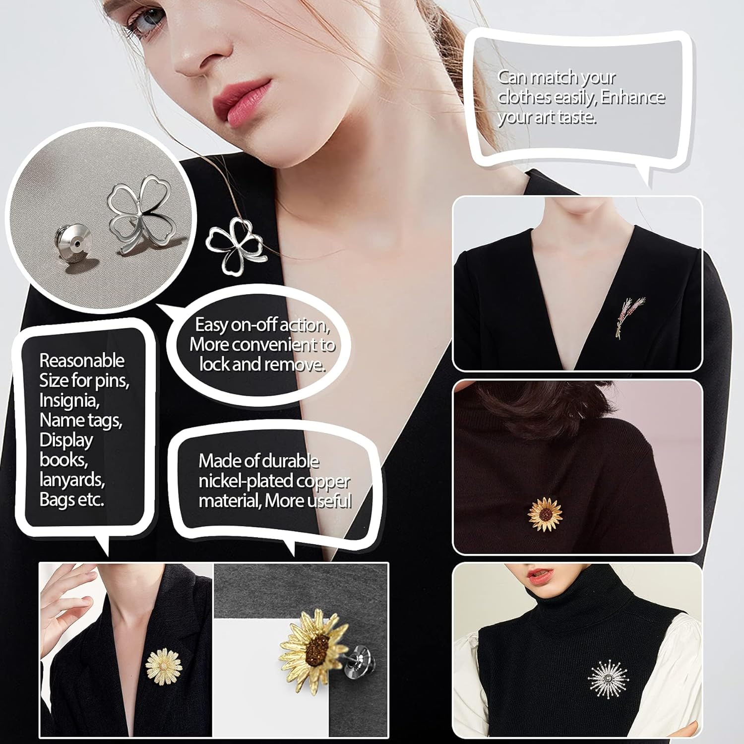 - Quality Material : These pin backs locking clasps are made of nickel-plated copper,which are durable and sturdy.They can lock your pins firmly to keep them secure