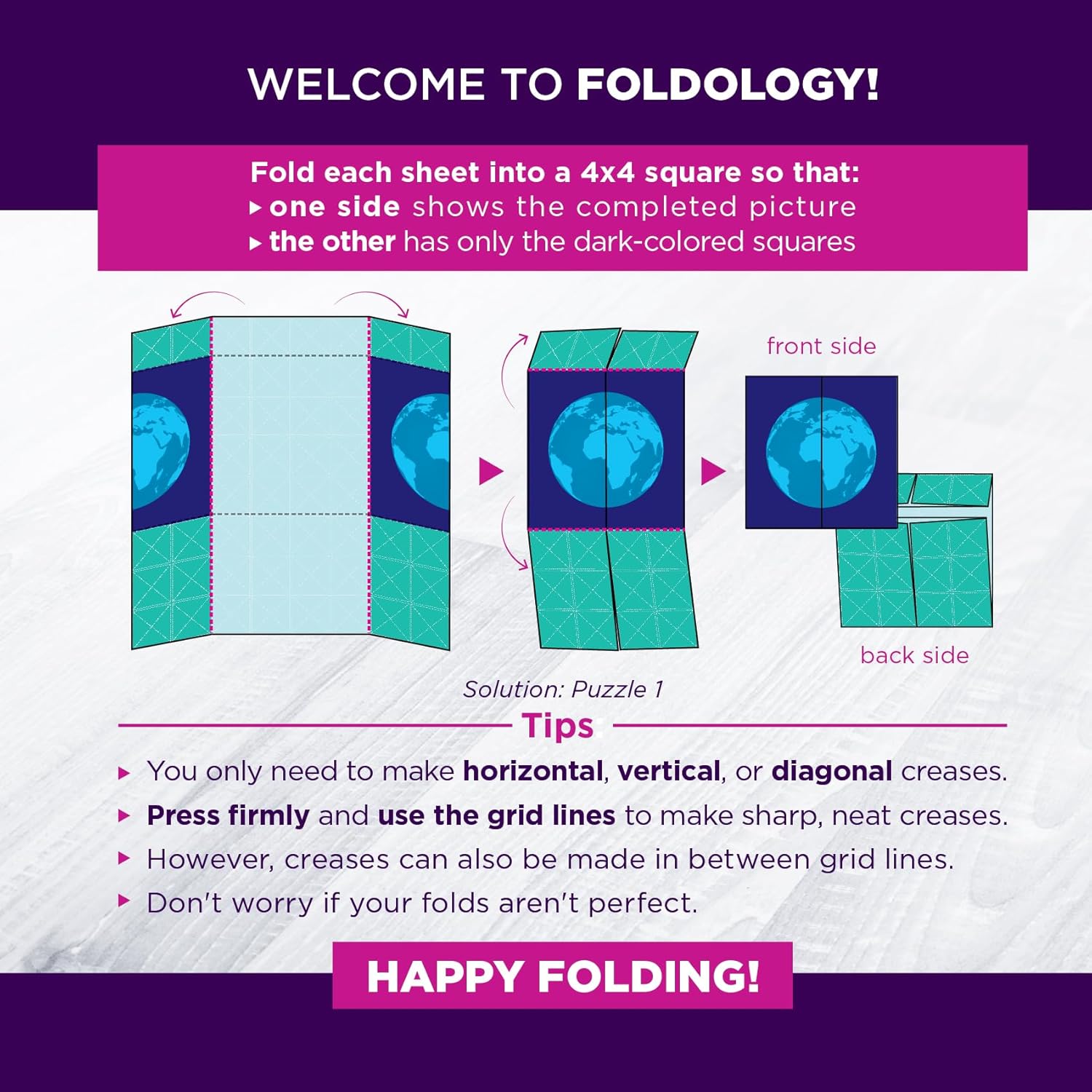 FOLDOLOGY - The Origami Puzzle Game! Brain Teasers for Tweens, Teens & Adults | Travel Game, Hands-On STEM Toy, Stocking Stuffer, Gift for Ages 10+ | Fold the Paper, Complete the Picture | 100 Puzzles