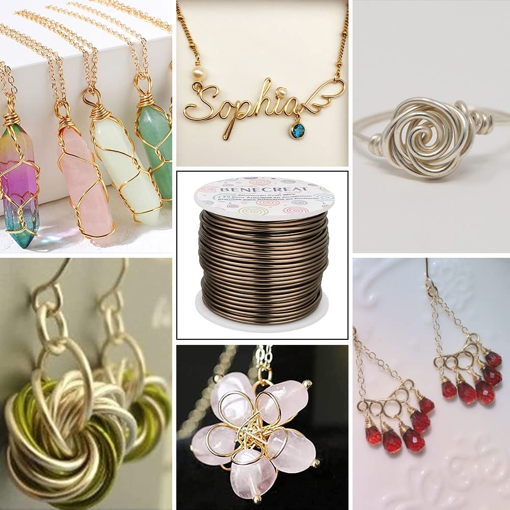 BENECREAT 9 12 17 18 20 22 Gauge Aluminum Wire (12 Gauge,100FT) Anodized Jewelry Craft Making Beading Floral Aluminum Craft Wire for Christmas Tree, Garden, Model Making - Brown
