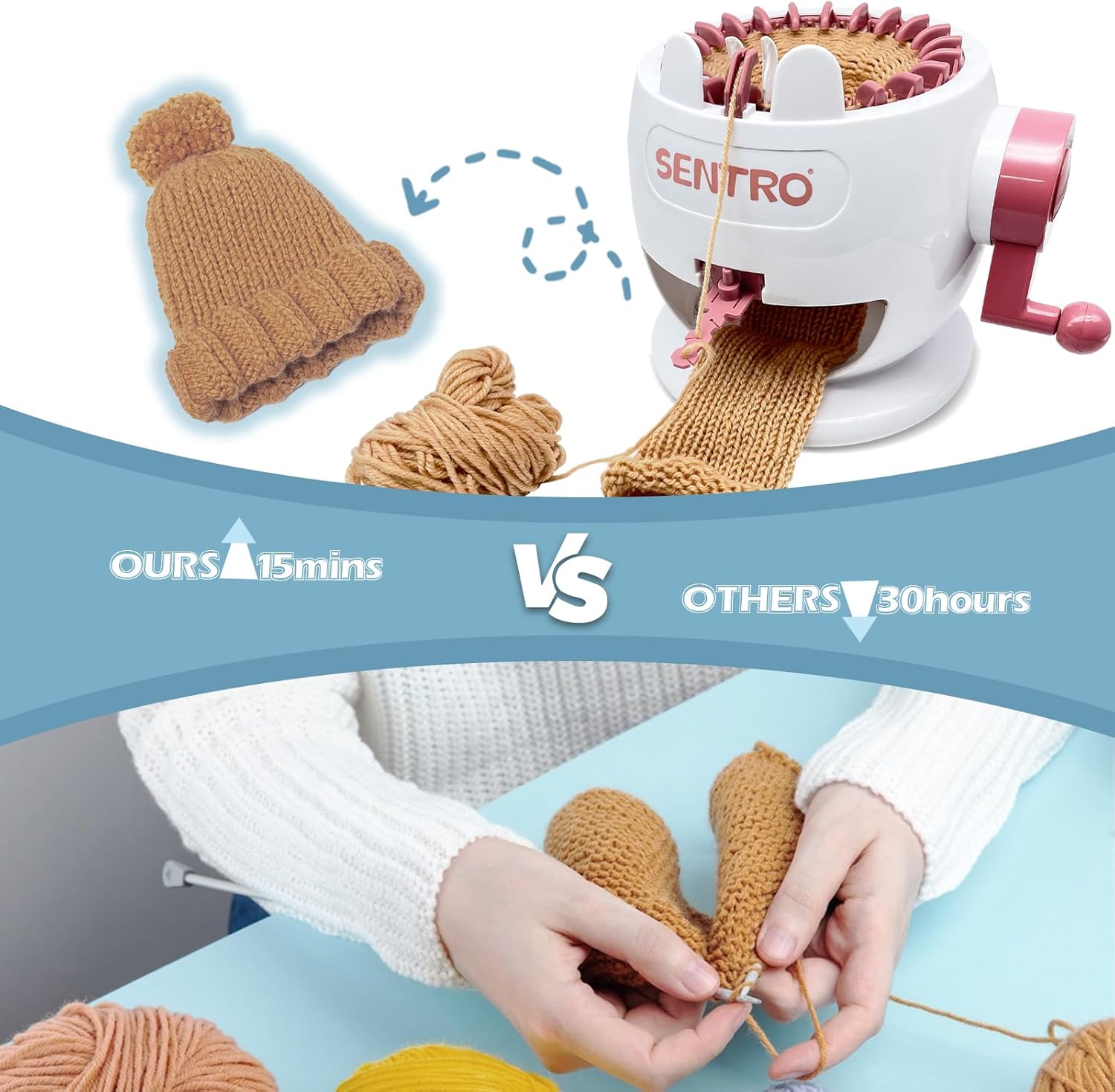 SENTRO 22 Needle Knitting Machine, Knitting Loom Set, Round Weaving Loom for Adults and Beginners, Bunny Shaped Smart Weaver, Hat Sock Scarf Loom,Arts and Crafts Knitting Kit