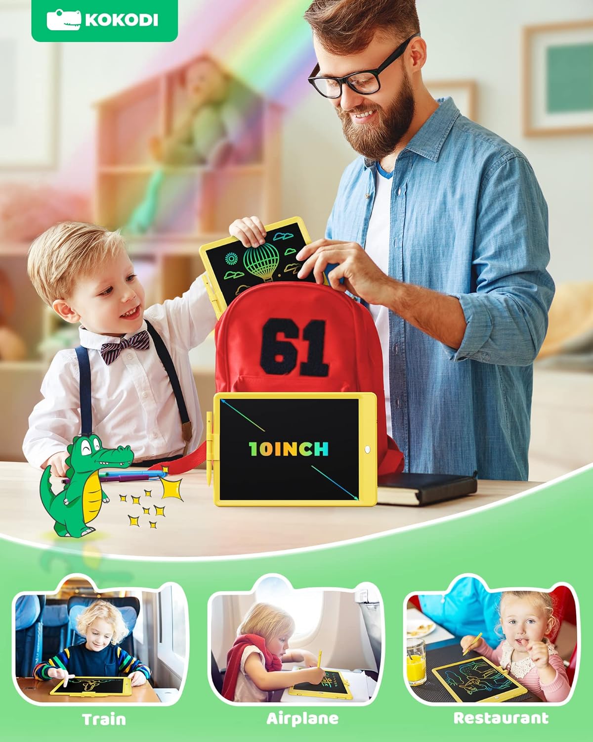 KOKODI LCD Writing Tablet, 10 Inch Colorful Doodle Board Drawing Tablet, Erasable Reusable Electronic Drawing Pads, Educational and Learning Toy for 3-6 Years Old Boy and Girls