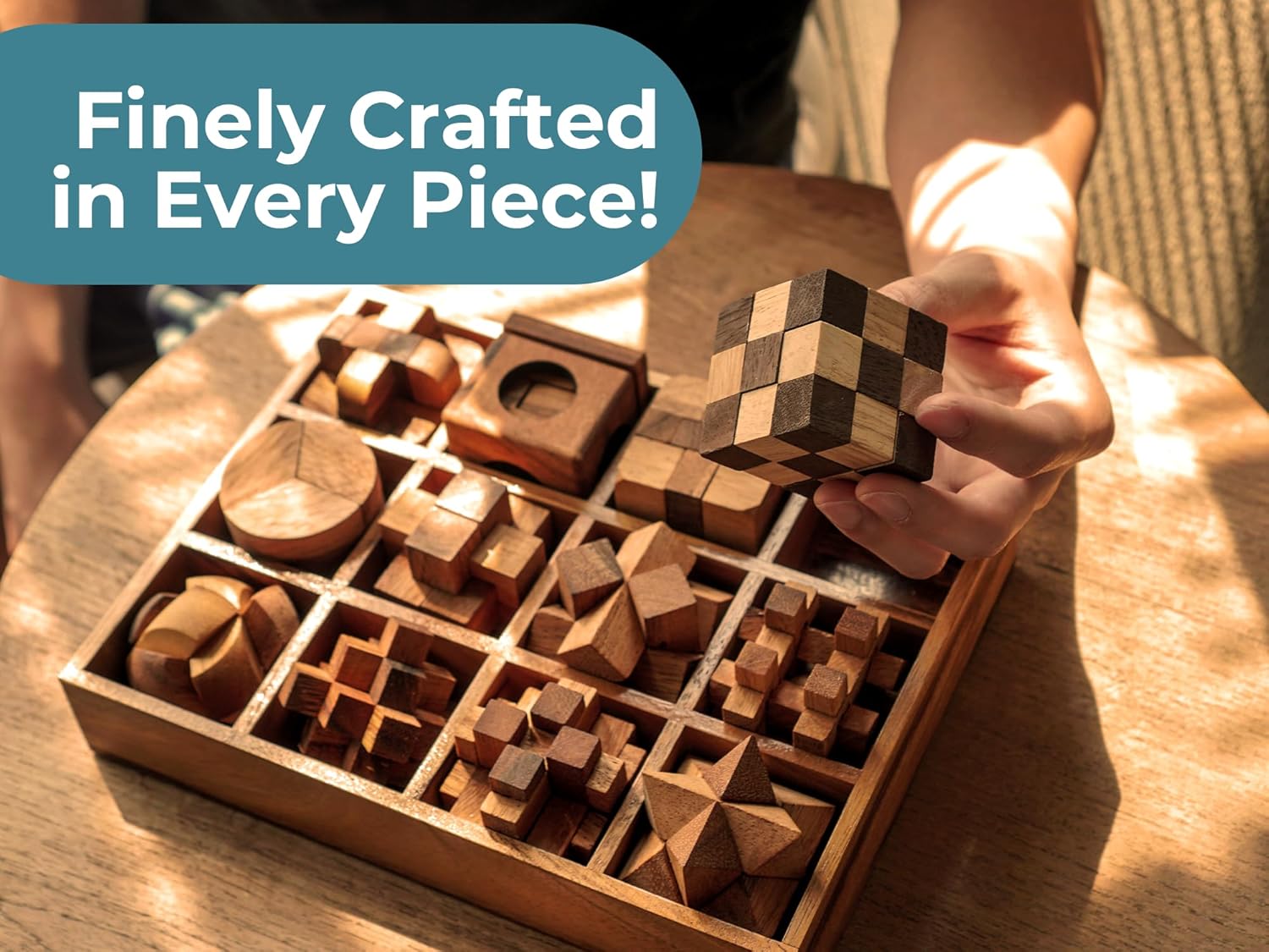 - Quality Craftsmanship: Crafted from high-quality wood, each puzzle in the set showcases exquisite craftsmanship. The natural wood finish adds a touch of elegance, making these puzzles perfect for coffee table decor.