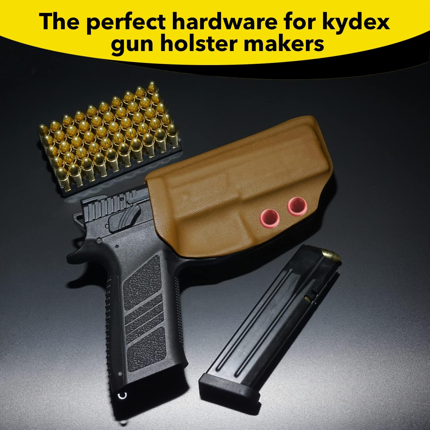- Kydex Rivets for Secure Attachment: These Kydex rivets are made to be tough and long-lasting, providing a secure way to attach your Kydex holsters, knife sheaths, and other DIY tactical projects. Perfect for making outdoor gear and custom Kydex accessories, they are designed for strong, durable use.