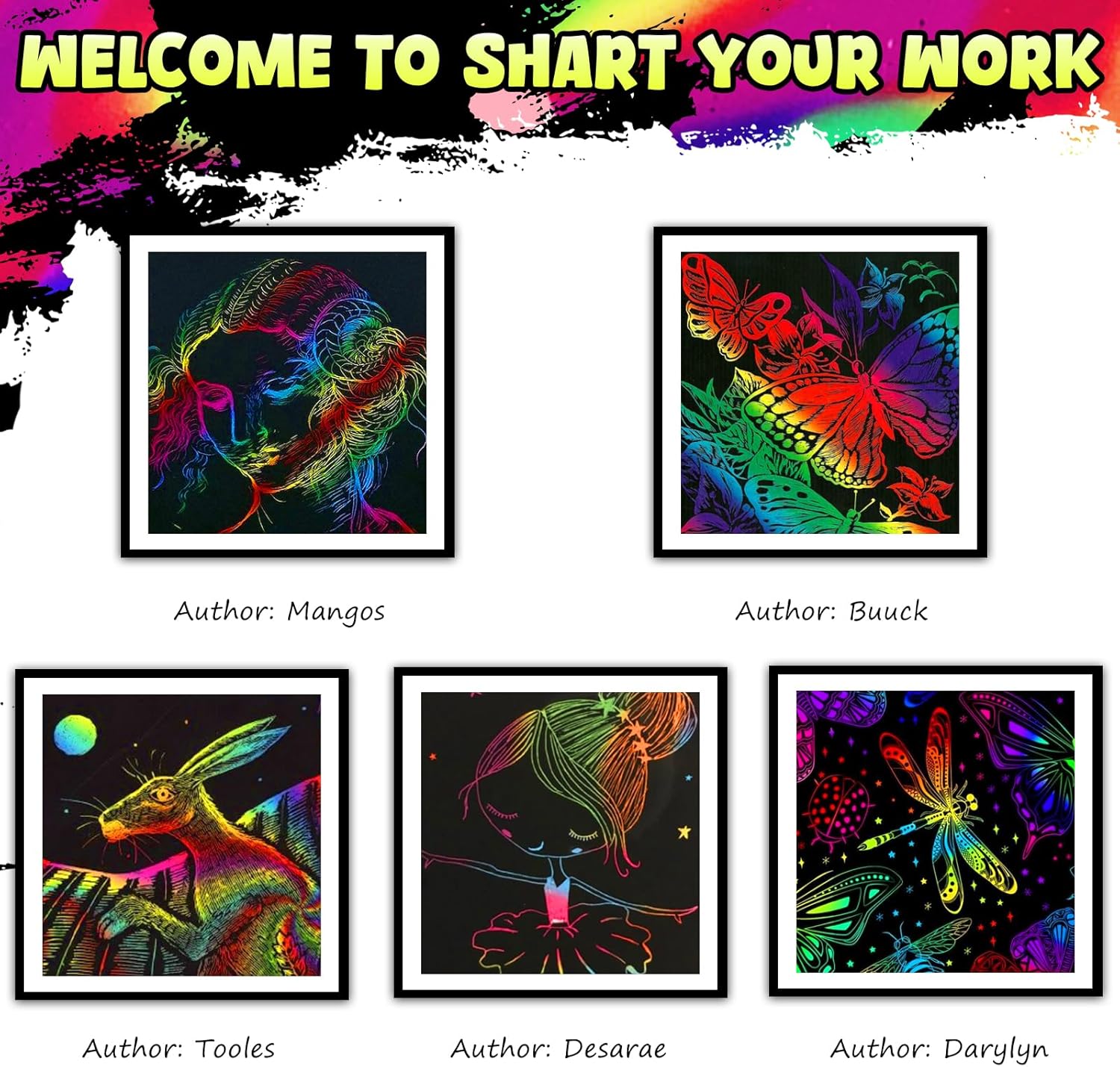 - Easy to Create Amazing Artwork: The magic notes scratch sheets is covered with different rainbow shades, just scratch away the black matte surface then even the same scratch pattern can create different effects! Everyone can take the time to play, think, test and prepare for their masterpieces