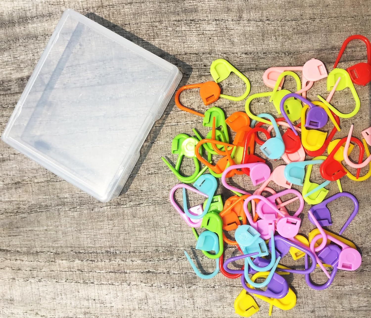 - Knitting markers crochet clip are store in a transperant box , crochet stitch counters solve forgetting the lines and patterns problems. It is colorful and attractive, and it makes all your items orderly and orderly !