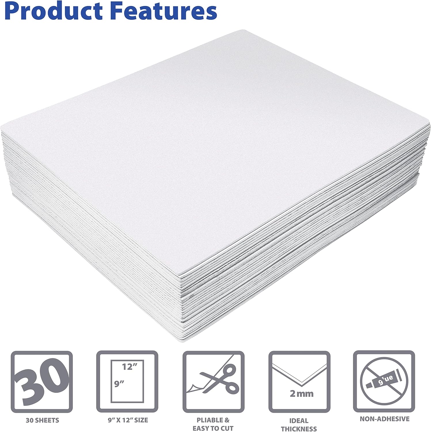 Better Office Products White EVA Foam Sheets, 30 Pack, 2mm Thick, 9 x 12 Inch, White Color, for Arts and Crafts, 30 Sheets Bulk Pack