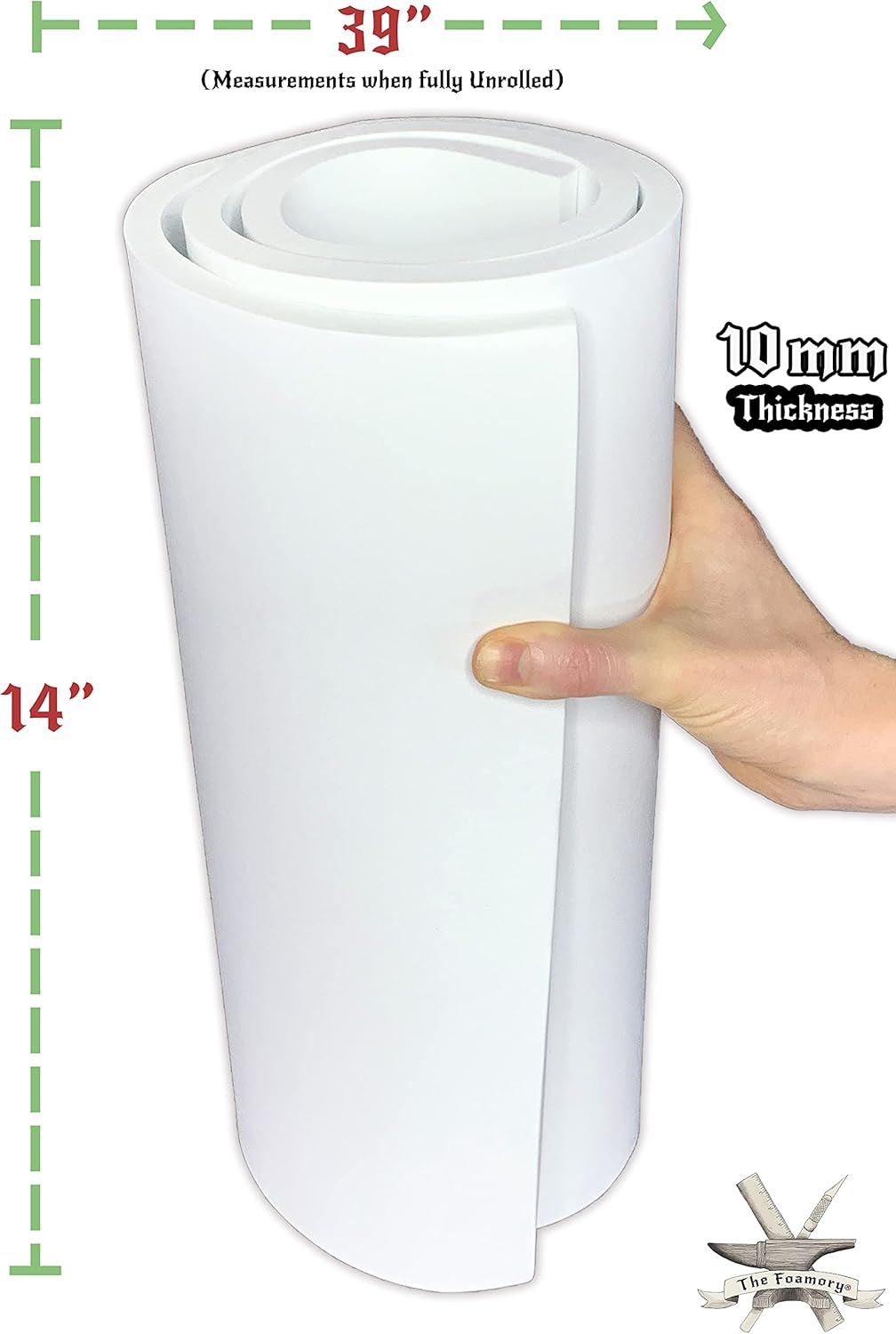 Shape Retention EVA Cosplay Foam 10mm (1mm-10mm) 14x39 inch White or Black High Density EVA Foam Sheets. Premium 85 kg/m3 Heat Shape Material for DIY Convention or Halloween Costumes by The Foamory