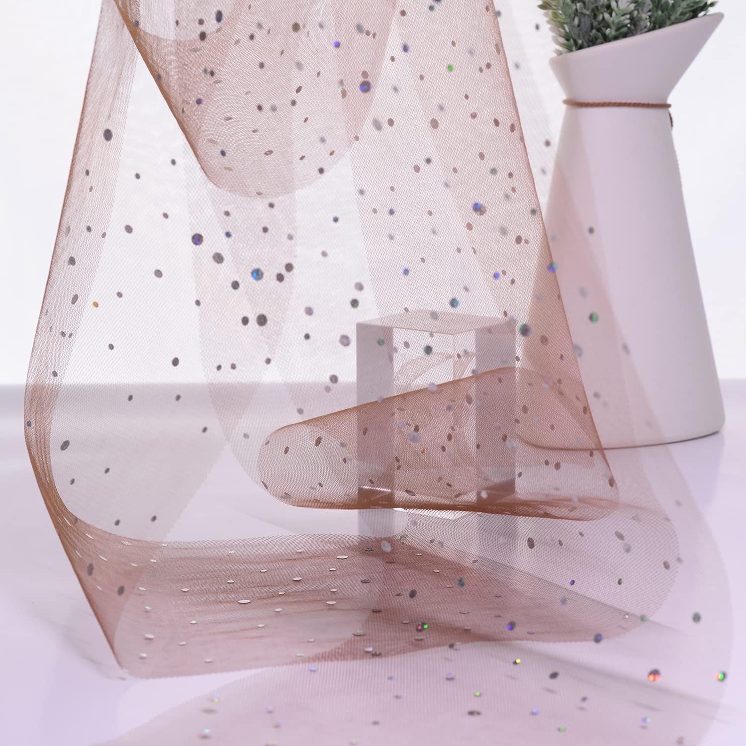 Glitter Tulle Rolls, 6' by 50 Yards (150FT) Sequin Tulle Netting Fabric for Tutu Skirts Sewing Birthday Wedding Party Decoration (Brown)