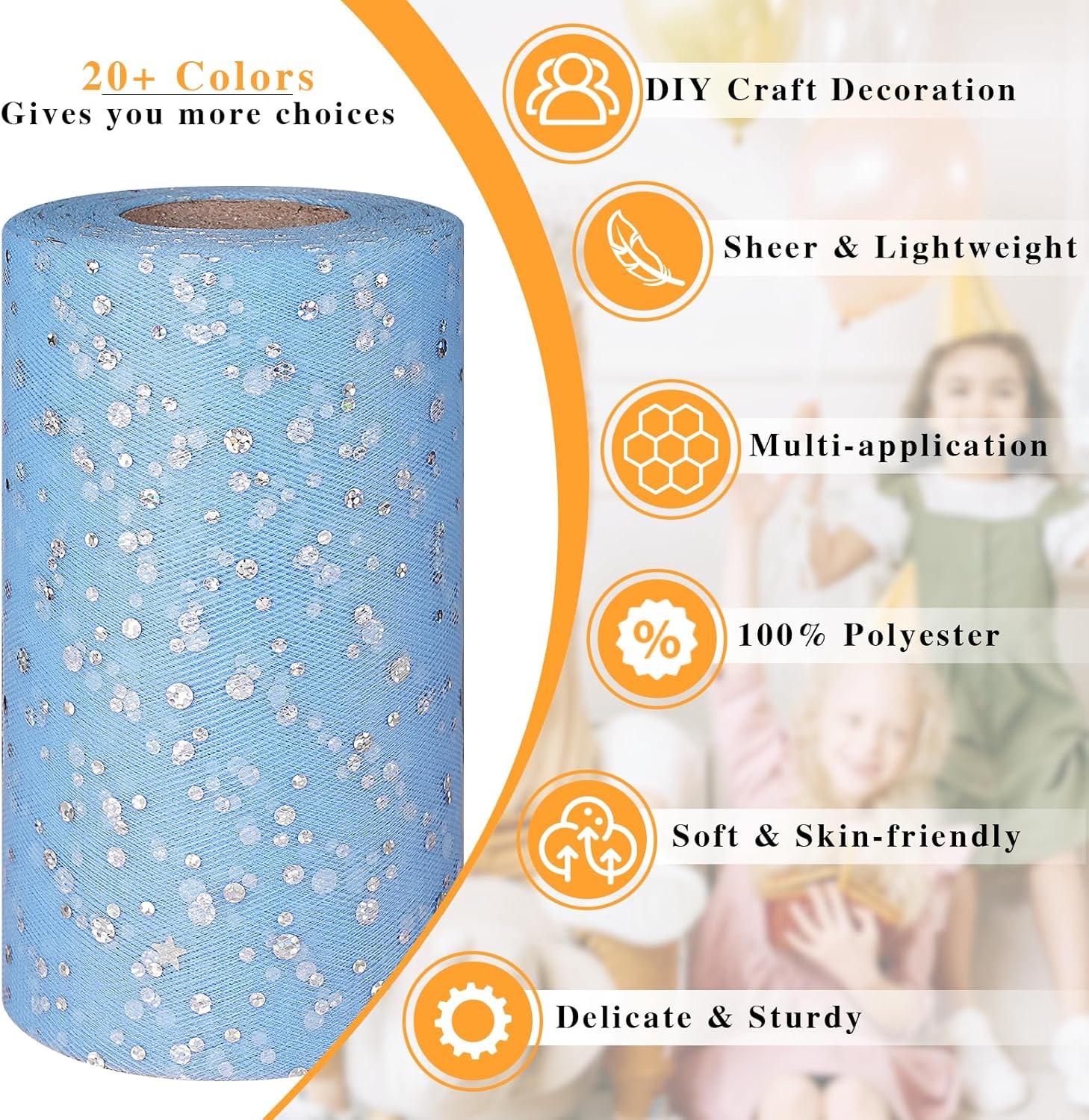 - 🎀【Glitter Sequin Tulle Ribbon】Designed with sparkling sequins, which will shine beautifully under lights, the glitter tulle helps to give your projects a stunning and fantasy look. Unlike another sequined tulle, ours is not easy to drop off, which is a good choice for Unicorn Themed baby shower, wedding birthday party decoration favors.