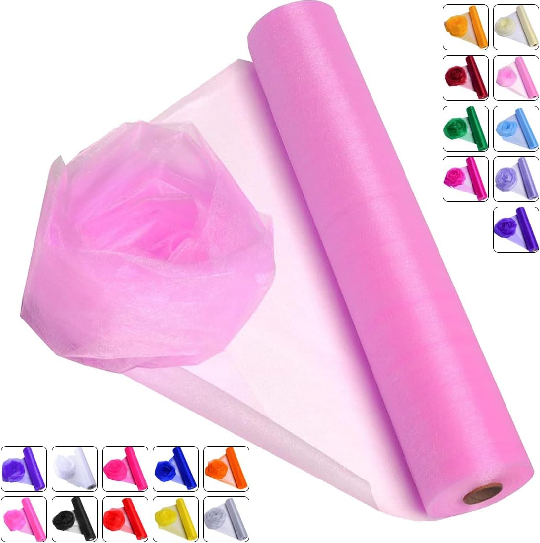 Crystal Organza Fabric Tulle - 16" by 50 Yards Sheer Fabric for Wedding Party Decoration Bridal Shower Tutu Roll Netting Spool Ribbon Wrapping (Light Pink)