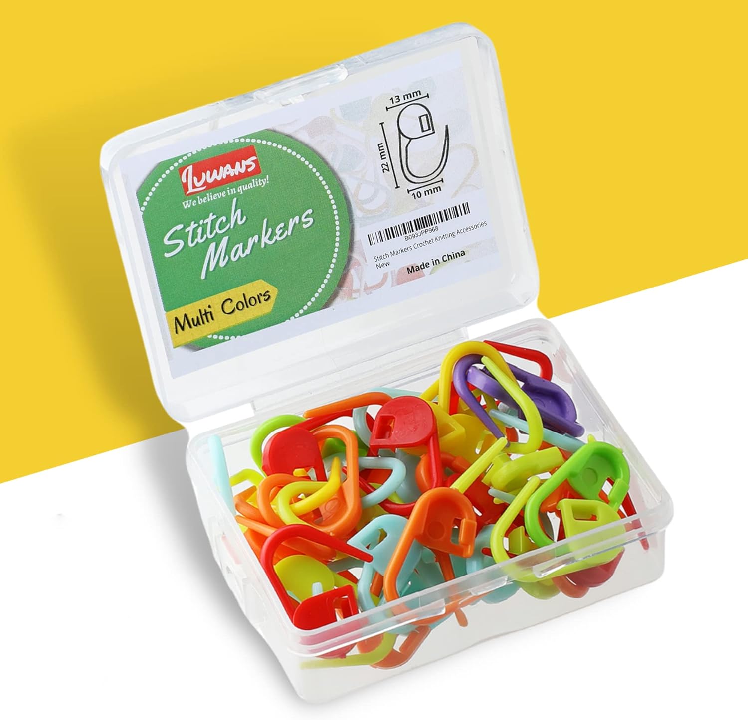 Luwans Stitch Markers for Crocheting - 50Pcs Crochet Stitch Markers for Knitting Yarn & DIY Crafts | Lightweight Plastic Crochet Pins with 8 Assorted Colors | Durable and Easy Locking, multicolored