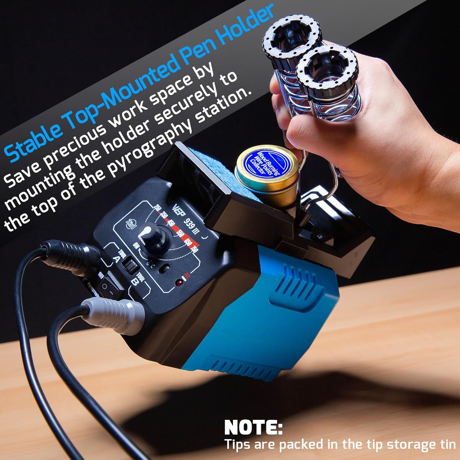 - The WEP 939-III Dual Pen Woodburner is designed to fit 2 wire-nib detailer pyrography pens. You can fit Pen A and Pen B with different tips for different effects, and switch between Pen A or Pen B easily with the A/B toggle button on the station. You’ll save the hassle of constantly changing tips when dealing with complex woodburning artworks