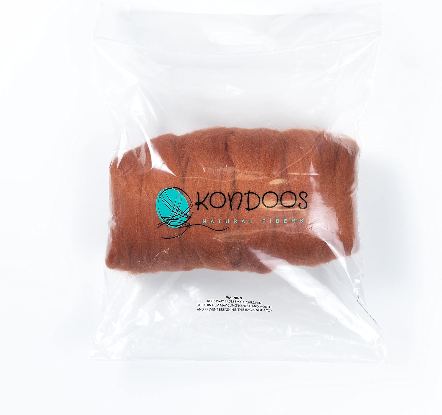 Kondoos Colored Natural Wool roving, 1 lb. Best Wool for Needle Felting, Wet Felting, handcrafts and Spinning. (ocher, 1 lb)