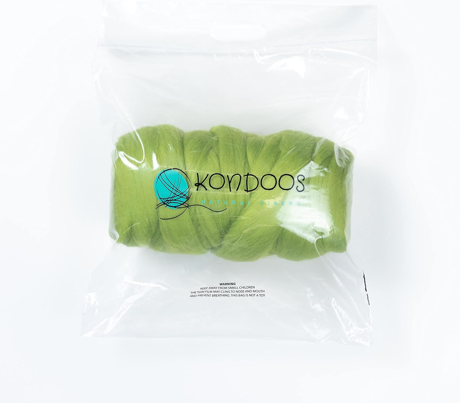 Kondoos Colored Natural Wool roving, 1 lb. Best Wool for Needle Felting, Wet Felting, handcrafts and Spinning. (Green Apple, 1 lb)