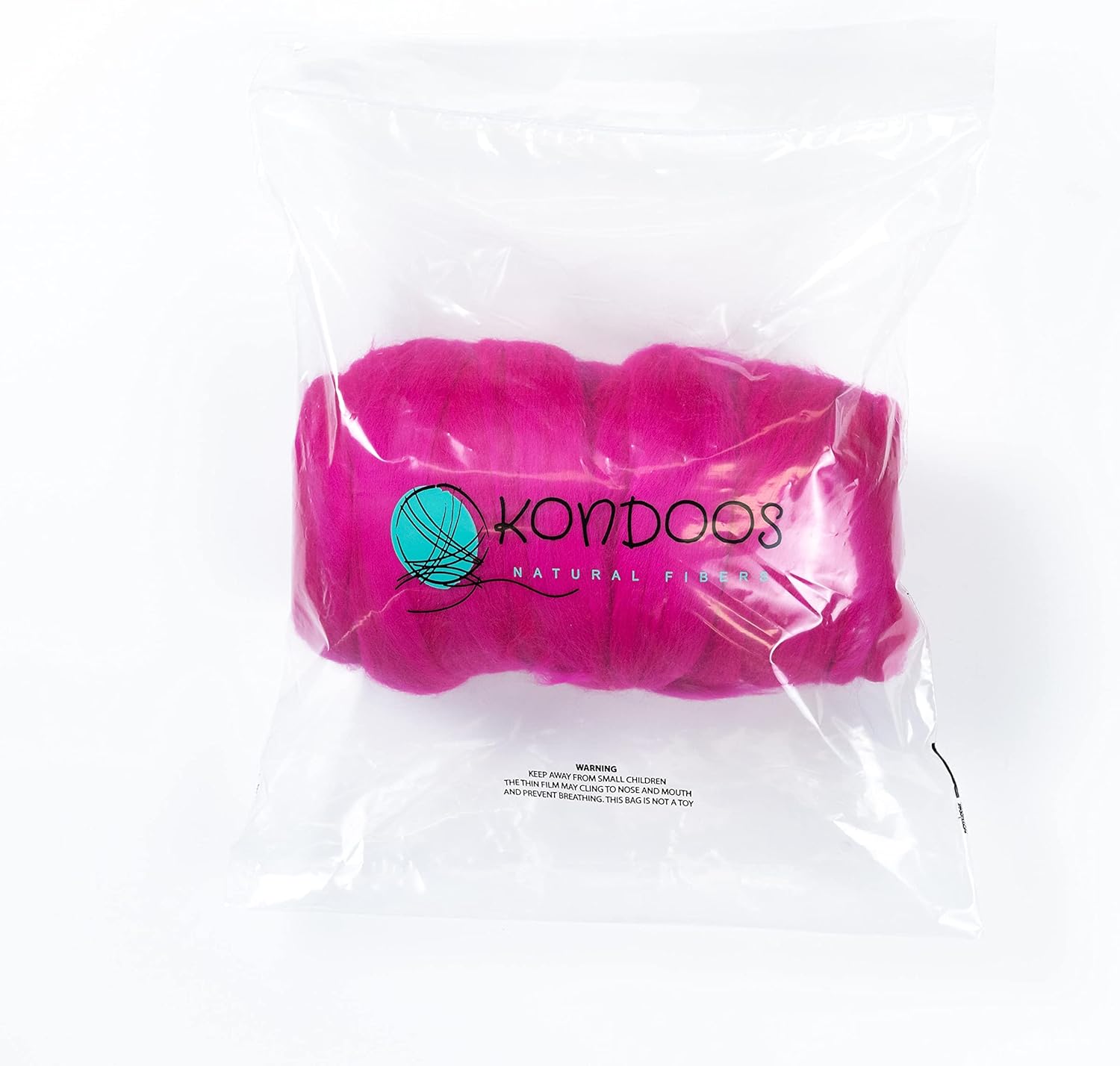 Kondoos Colored Natural Wool roving, 1 lb. Best Wool for Needle Felting, Wet Felting, handcrafts and Spinning. (Magenta, 1 lb)