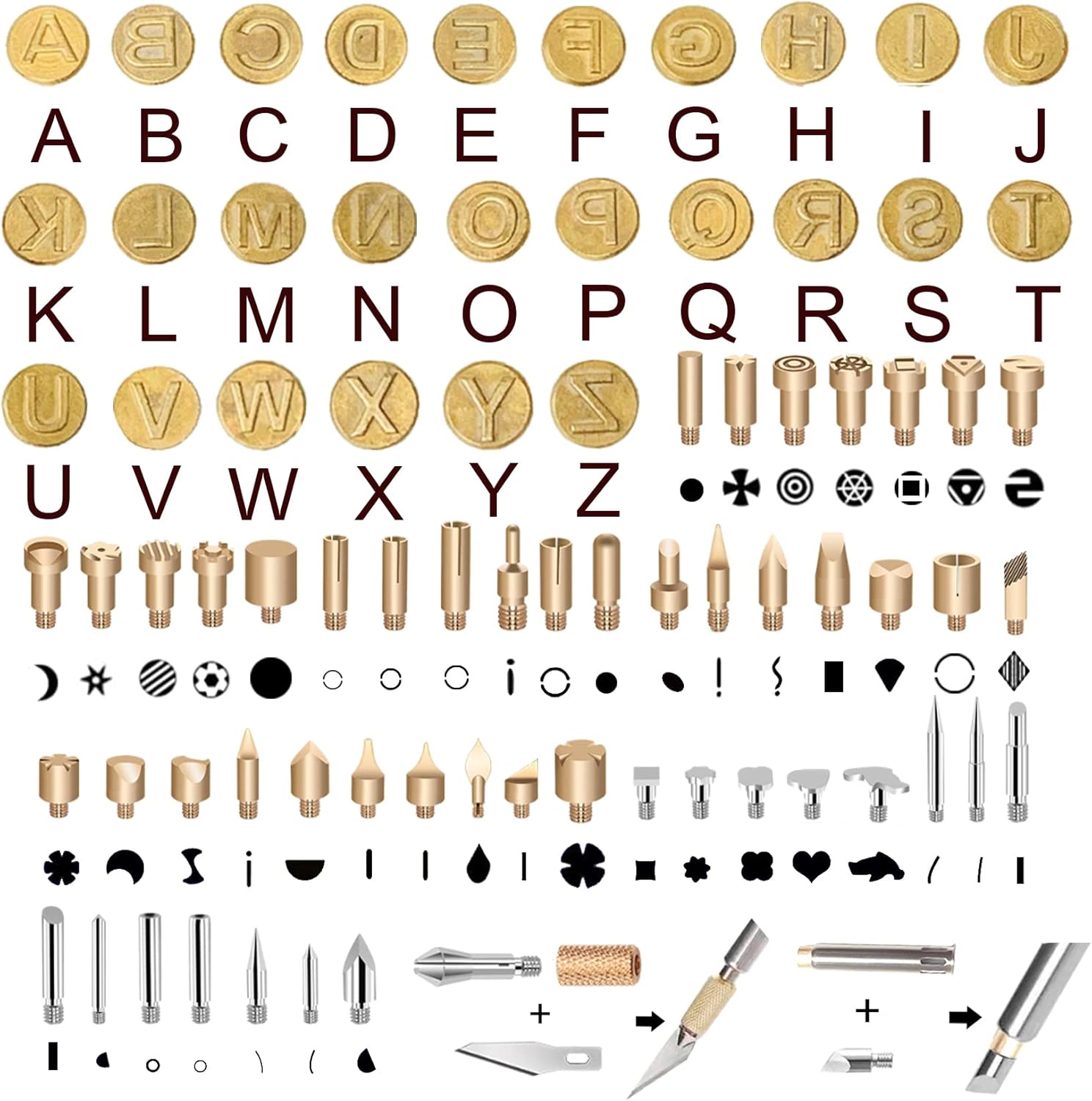 BEZALEL 112Pcs Wood Burning Tips - Pyrography Wood Burning Kit Includes Wood Burning Tips Only Wood Burning Letters Wood Burning Stencils and Patterns for Embossing Carving DIY Adults Crafts Beginners