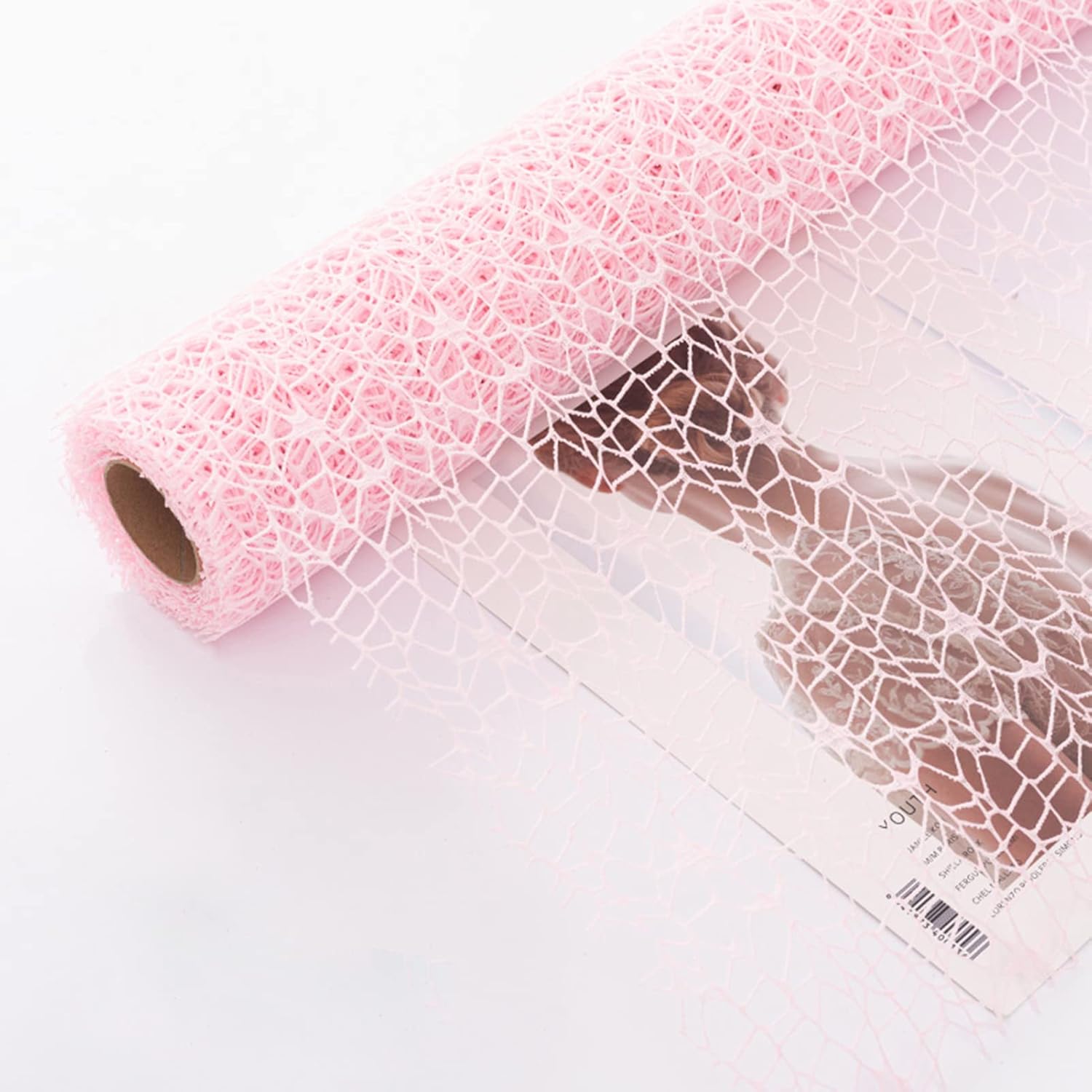 Korean Jacquard Net Mesh Openwork Floral Wrapping Paper 1 Roll Florist Supplies Flower Bouquet Wrapping Paper Floral Supplies for Fresh Flowers, 50cm x 5 Yard (Cherry Blossom Powder)