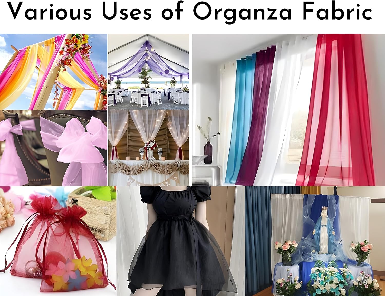 - ✨ Spark Creativity: Elevate events with organza's sheer elegance! Perfect for weddings, gatherings, holidays and arch decorations. Ideal for events like birthdays, baby showers, bridal showers, and graduation parties. From crafting to draping, it adds elegance to table accents, stage backdrops, and entrance decor.