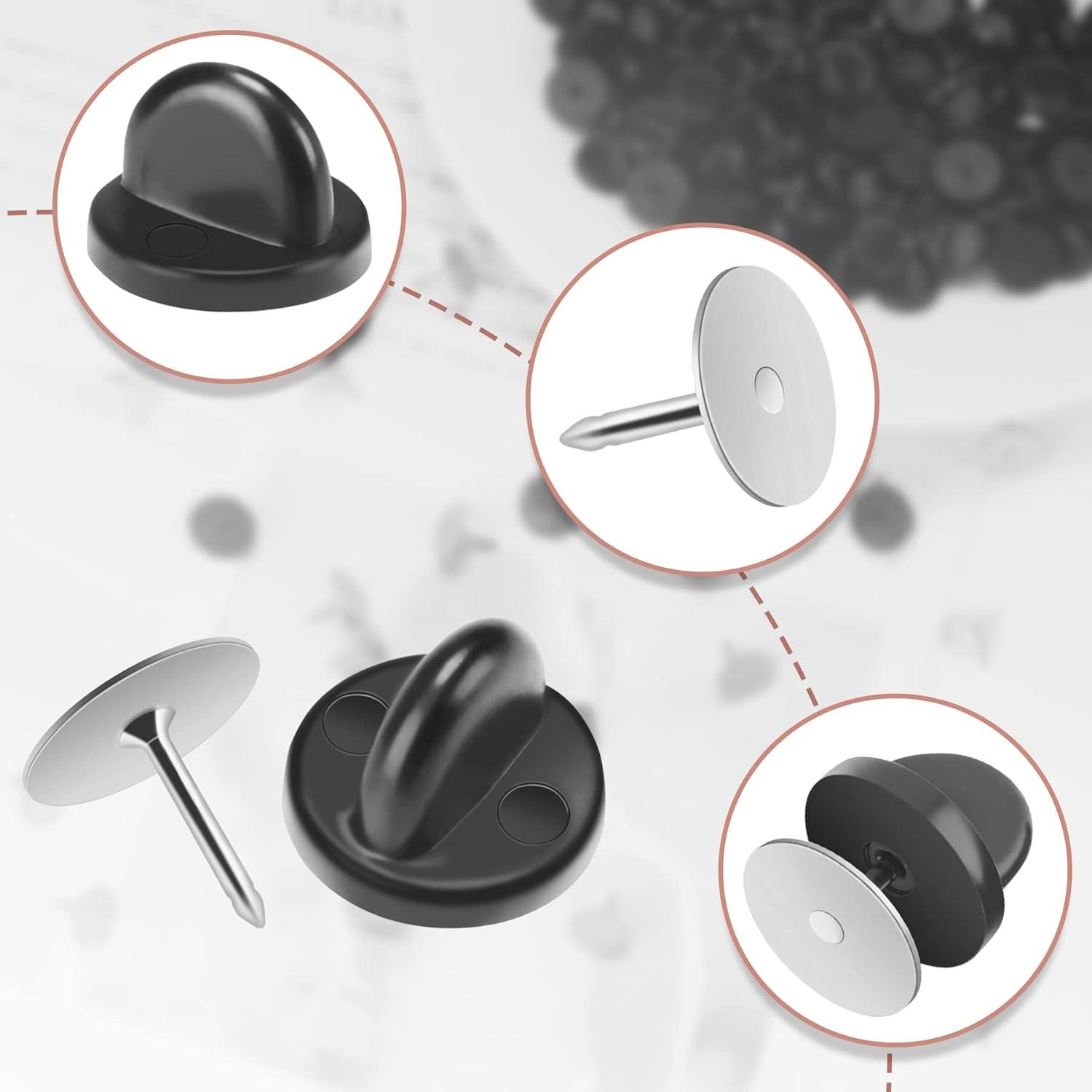 - Sturdy and durable: Butterfly Clutch backs are made of PVC rubber ,blank pins are made of nickel plated brass, sturdy and light, lock pins firmly and keep them .secure