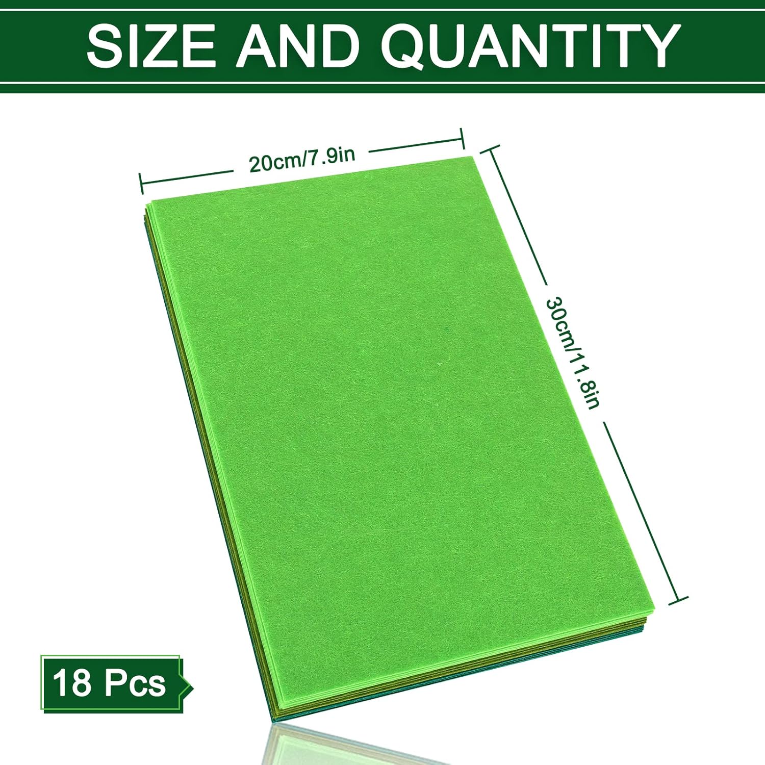 - Green Series - 18 pack felt fabric sheets in 3 colors, from dark to light, each color has 6 sheets, plain and peaceful color and sufficient quantities that meet your various of needs for DIY crafts.