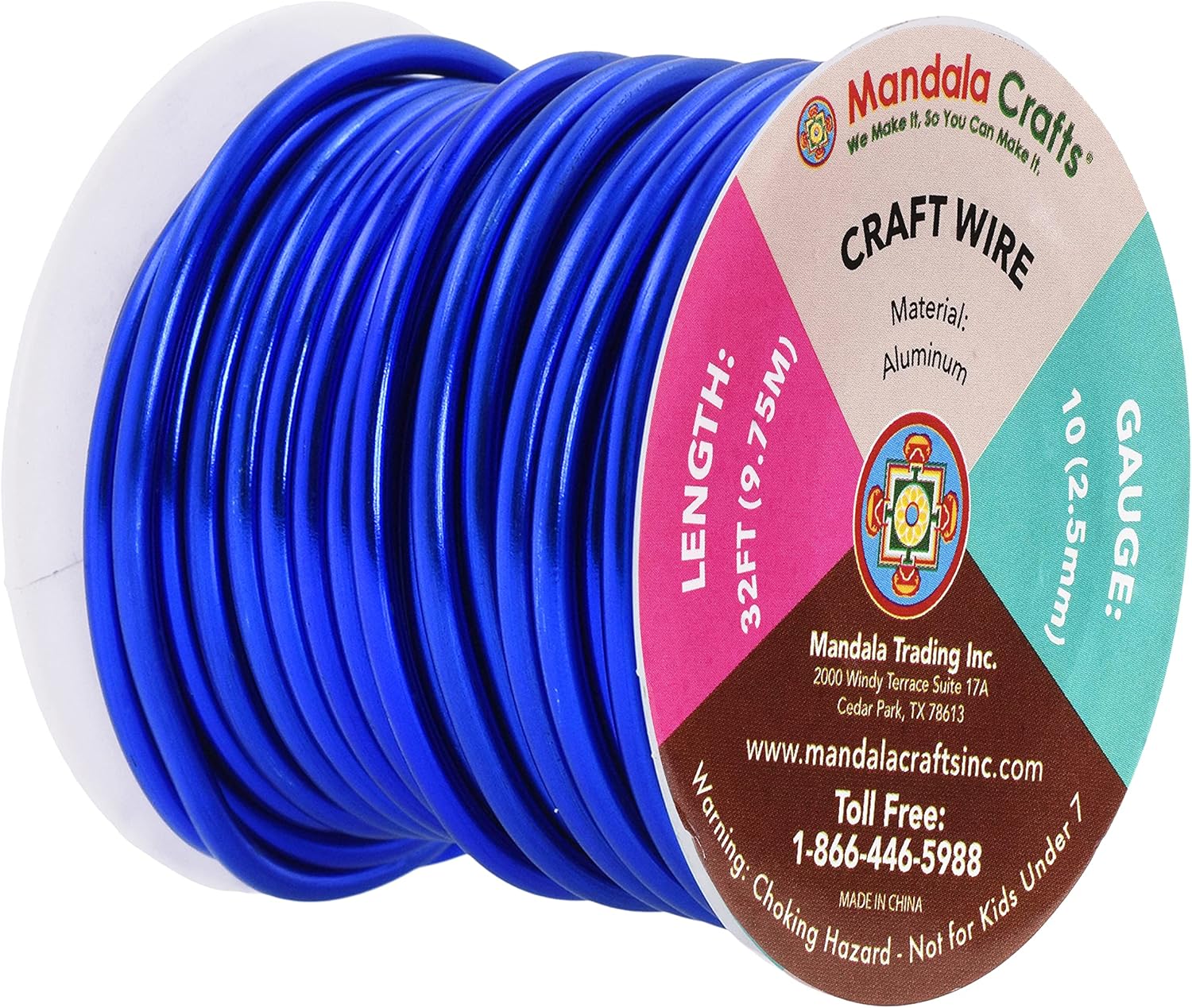 Mandala Crafts 10 Gauge Anodized Aluminum Craft Wire for Jewelry Making - 32 FT Colored Flexible True Blue Wire - Bendable for Bonsai Armature Crafting Sculpting