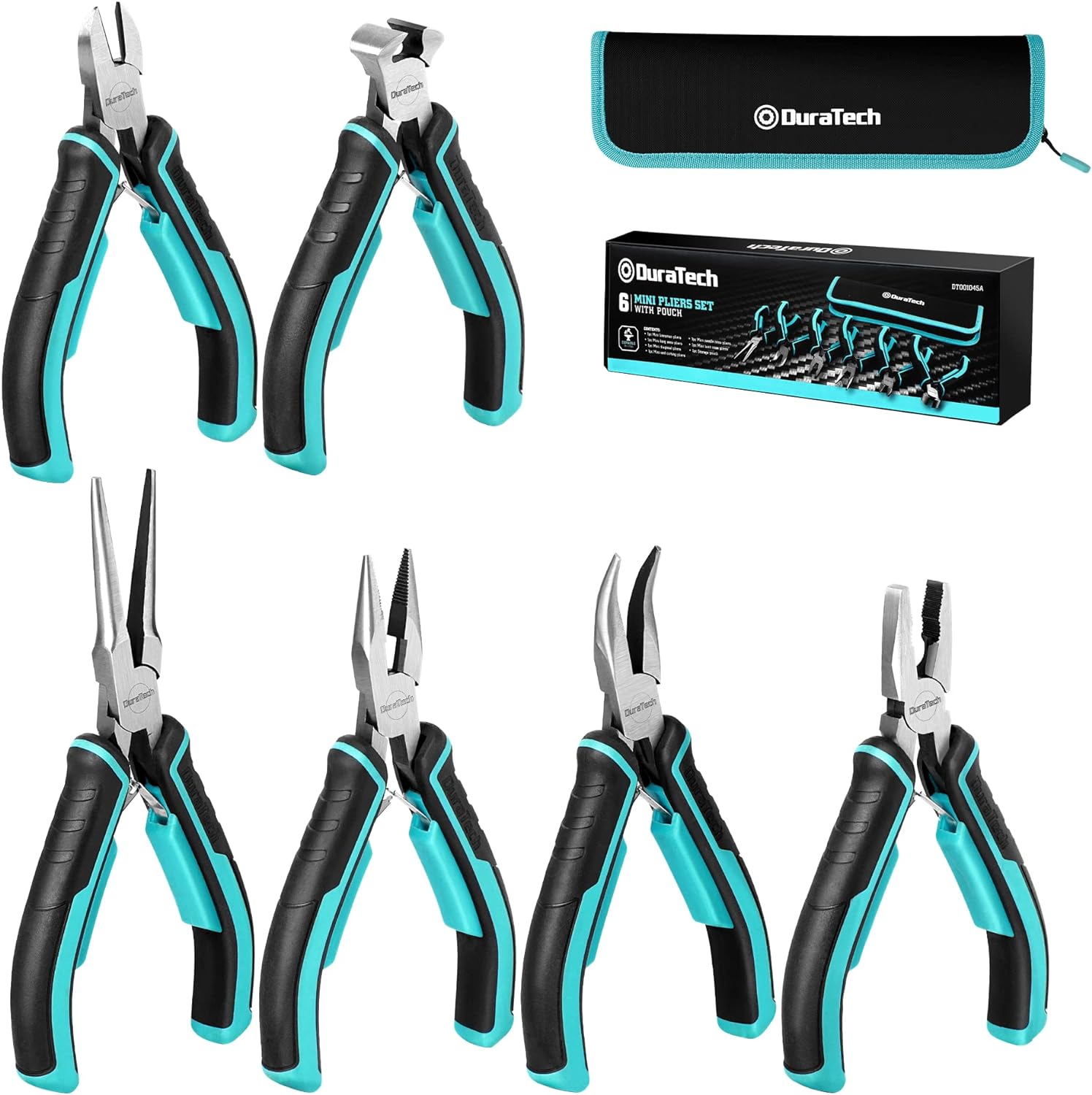DURATECH Mini Pliers Set, 6PCS Jewelry Pliers Set, CRV Construction, Includes Needle Nose, Diagonal, Long Nose, Bent Nose, End Cutting and Linesman Pliers, for Making Crafts, Repairing Electronic