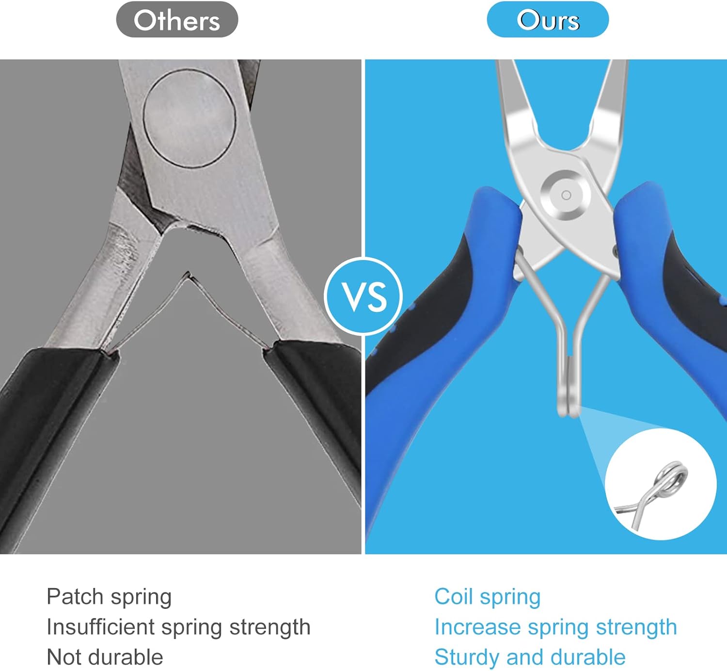 - 【High Quality Jewelry Making Tools】Jewelry pliers are made of high-quality carbon steel material, professionally heat-treated, sturdy and durable, coil spring improves the spring strength and better extends the life of the pliers.