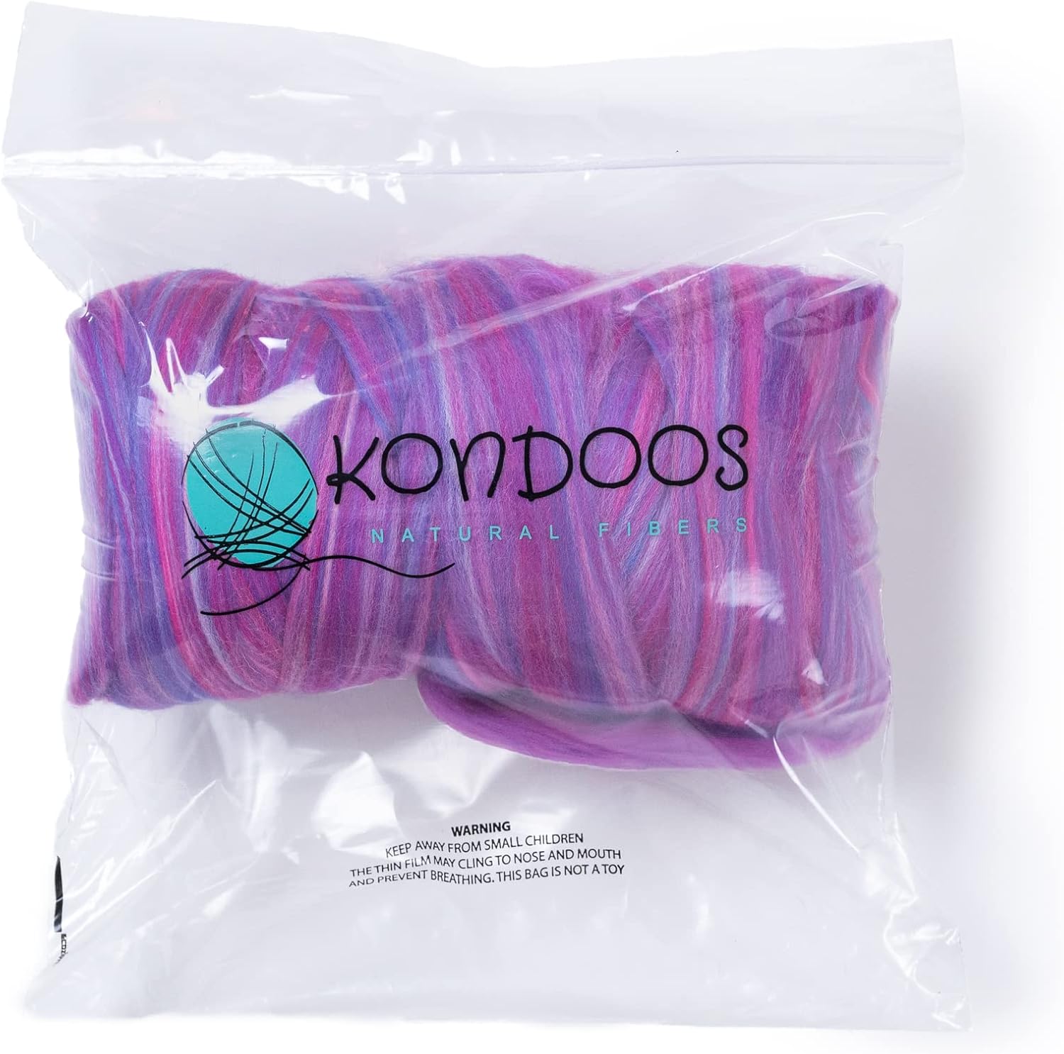 Kondoos Multi Colored Natural Wool roving, 1 lb. Best Wool for Needle Felting, Wet Felting, handcrafts and Spinning. (Candy, 1lb)