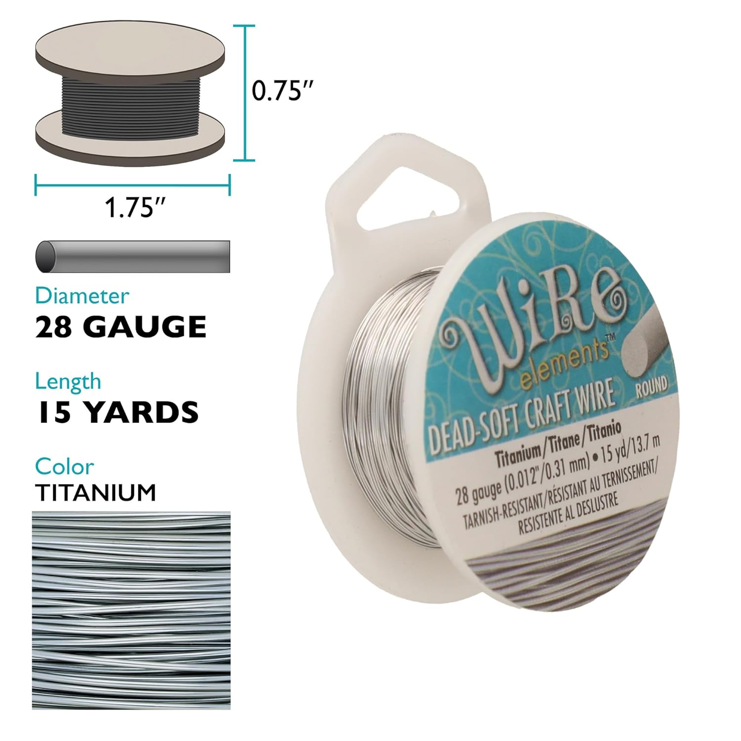 The Beadsmith Wire Elements Craft Wire – Tarnish Resistant, Soft Temper, Round, Titanium Color – 0.32mm, 28 Gauge, 15 Yard Spools – Jewelry Making, Wire Wrapping, & Other DIY Crafts