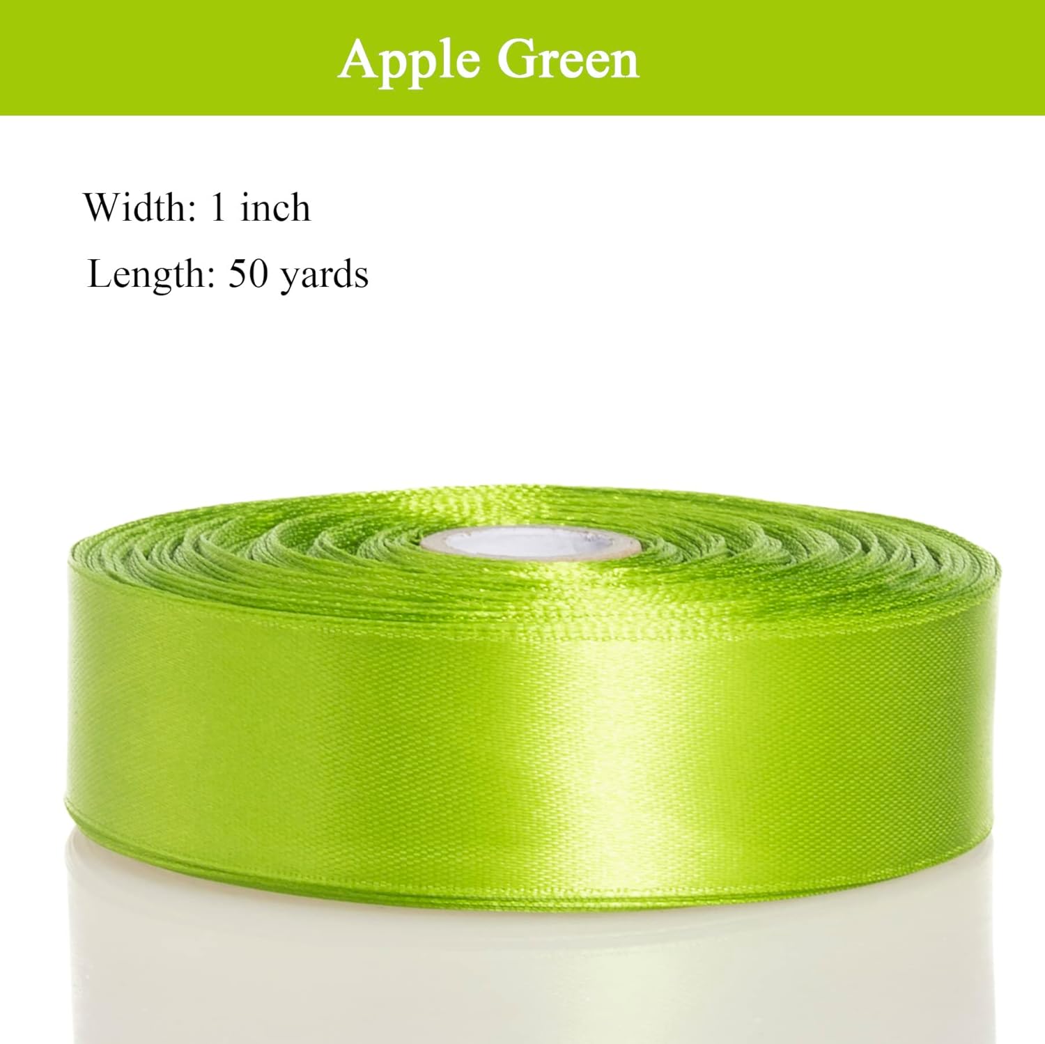 1 Inch Apple Green Solid Satin Ribbon, 50 Yards Craft Fabric Ribbon for Gift Wrapping Floral Bouquets Wedding Party Decoration