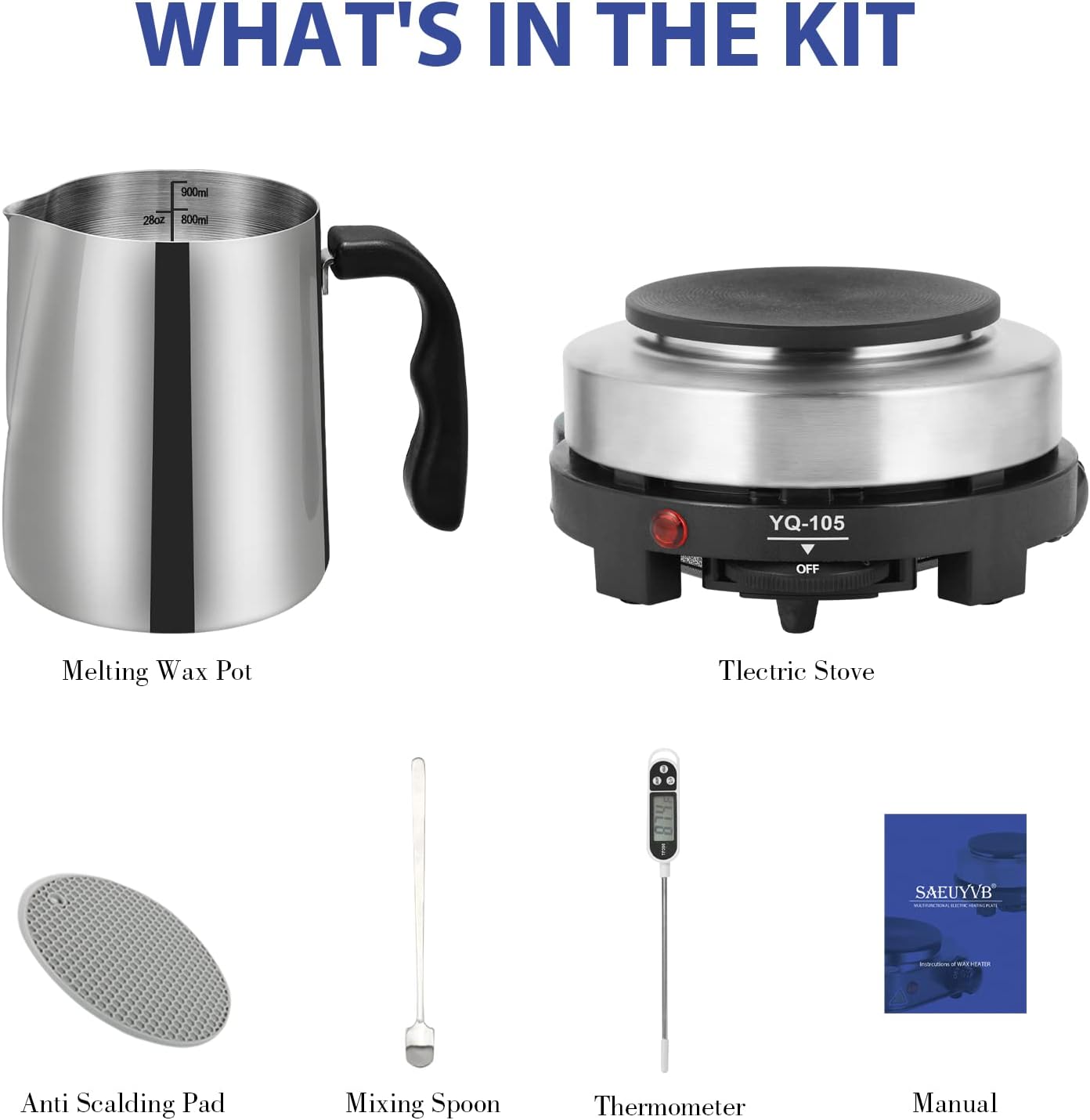SAEUYVB Candle Making kit with Hot Plate,Candle Making Supplies,Candle Making Kit for Beginners with Melting Pot,Stirring Spoon and Anti-Scalding Pad Perfect Set Gift
