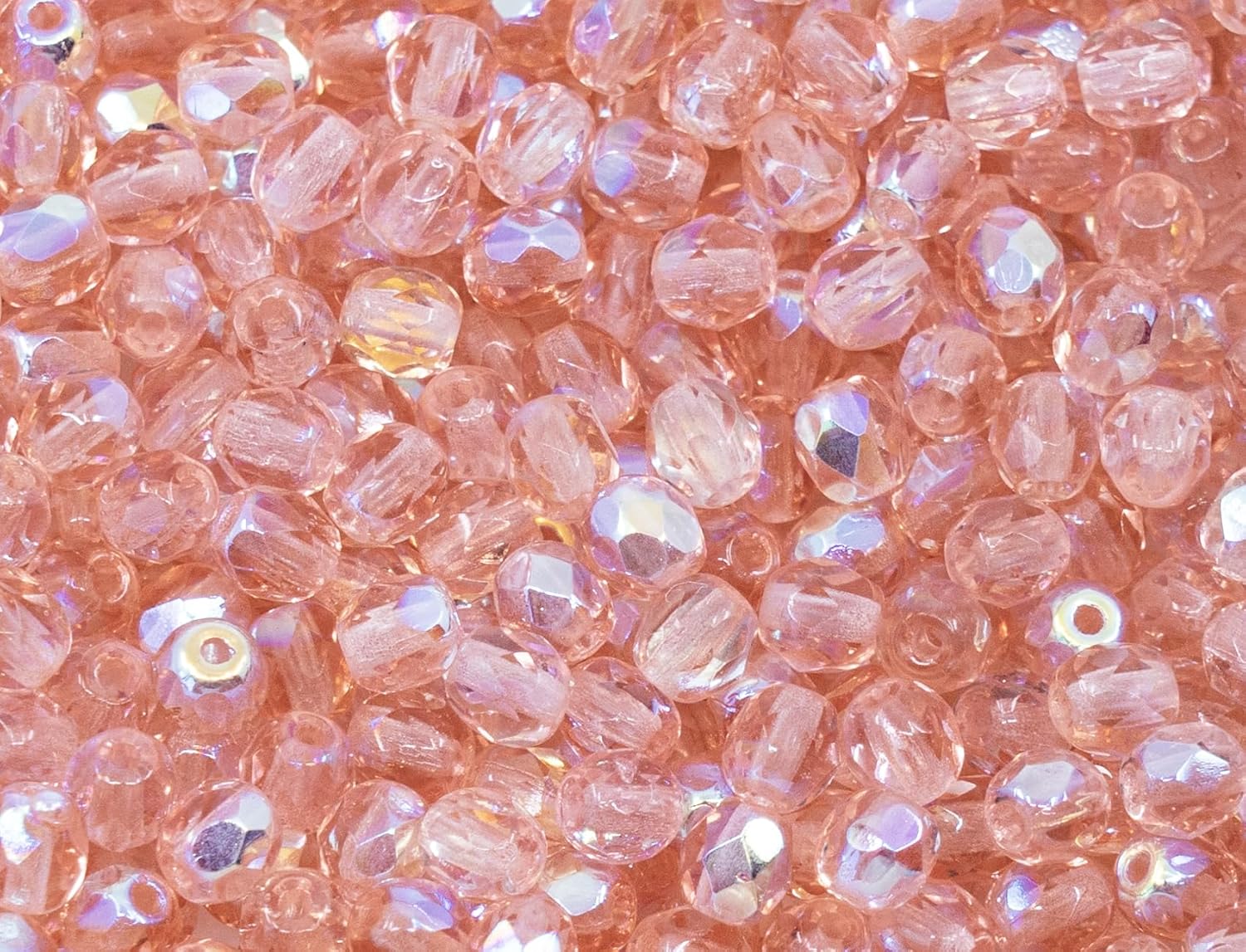 1.8oz (50g, Approx. 600 Beads) Faceted Fire Polished Pressed Czech Glass Beads 4mm (0.16in), 70120-28701 Pink Rosaline AB
