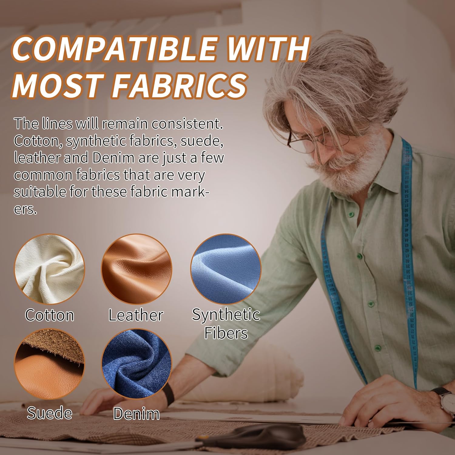 - COMPATIBLE WITH MOST FABRICS - Lines will remain consistent even on shiny or textured fabrics. Cotton, synthetic fabrics, suede, leather, and denim are just several of the most common fabrics that work very well with these fabric markers