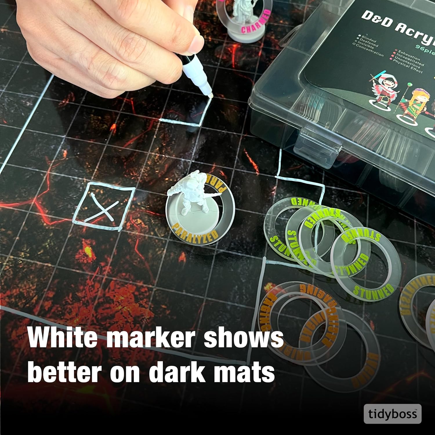 - 💣 A Total DnD Battle Expansion Set: You bring the d&d figurines and we’ll supply the Mats and Dry Erase Markers! The TidyBoss RPG DnD Expansion Mat Kit comes with (3) Double Sided Mats with 6x Unique Designs, (2) Dry Erase Markers, (1) Eraser and (4) Plastic Straightening Clips. It’s a full unique dnd mat set for GM’s and a dungeon master screen set that you can't find anywhere else.