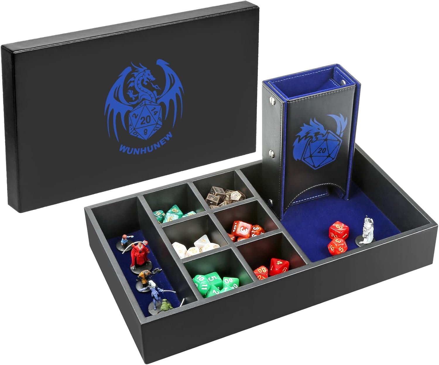 DND Dice Tray & Tower Storage Box, 4 in 1 D&D Dice Holder Case (Dice Rolling Tray, Dice Roller Tower, Dice & Miniature Storage), Great RPG Accessories Gifts for Dungeons and Dragons MTG DM & Player