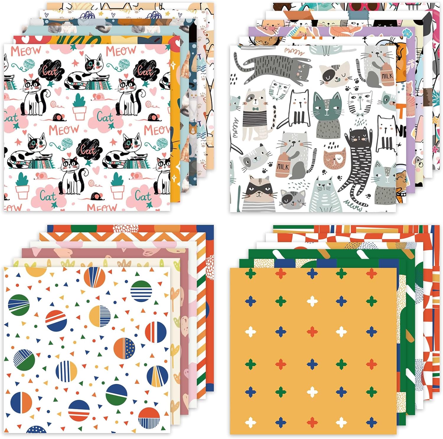 48 Sheets 24 Designs Scrapbook Paper Pad, 6"×6" Single-Sided Decopodge Craft Cardstock Paper,Scrapbooking DIY Decorative Background Cardmaking Supplies.Cat's Life&Sweet Love