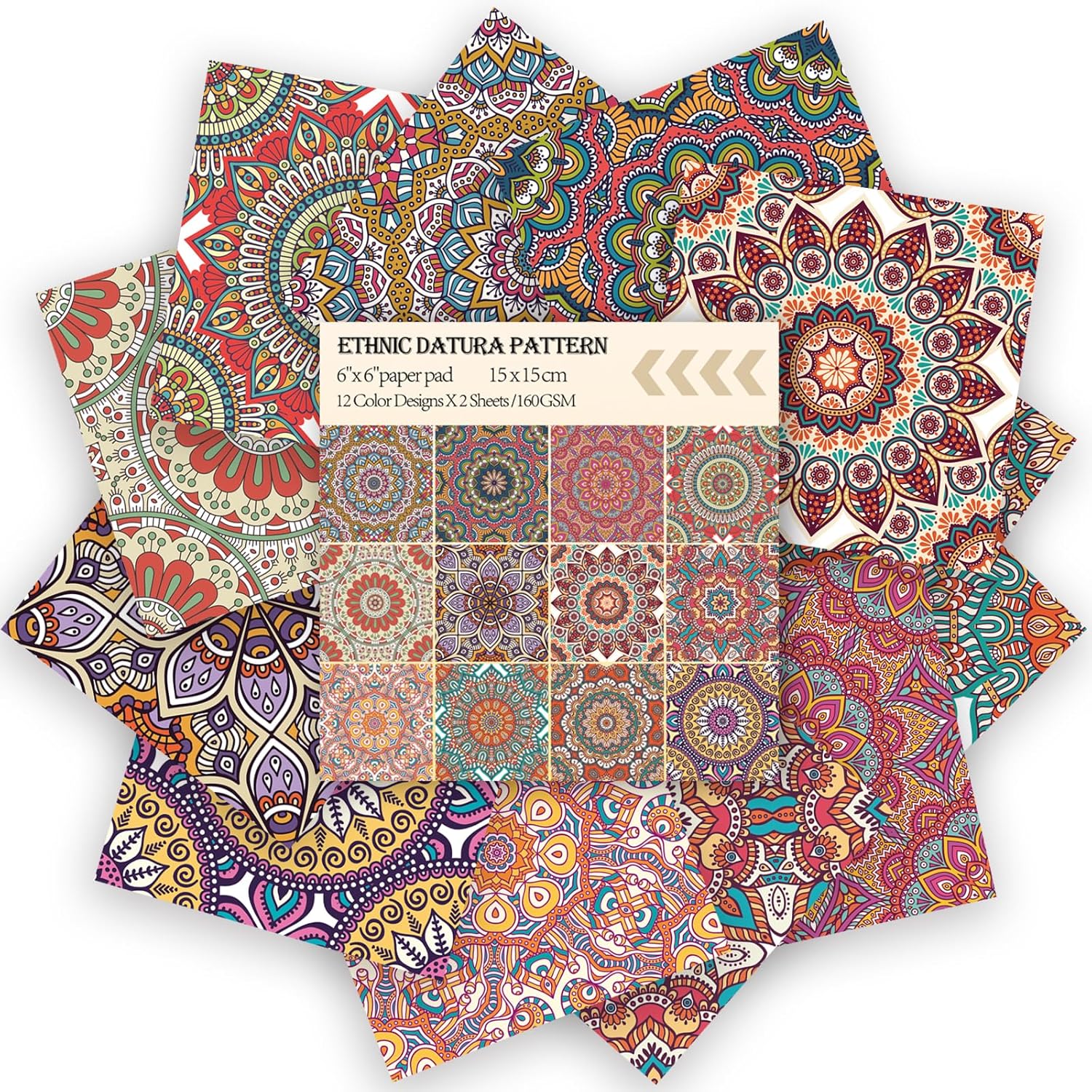 24 Sheets 12 Designs Scrapbook Paper Pad,6"×6” Single-Sided Decopodge Craft Cardstock Paper,Scrapbooking DIY Decorative Background Cardmaking Supplies.Datura