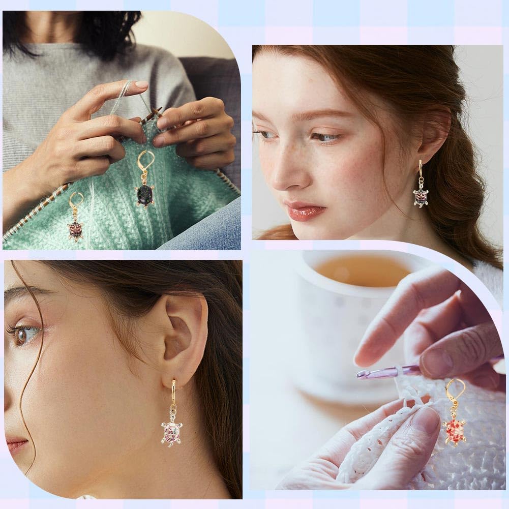 - ❤[SIZE]: Locking stitch marker: about 40mm(1.57inch) long, tortoise charms: 23.5~24.5x13.5~14.5x4.5~5mm(0.93~0.96x0.53~0.57x0.18~0.2inch), hoop earrings: 16x10x1.7mm(0.63x0.39x0.07inch), 5 colors, 4pcs/color, 20pcs/box.