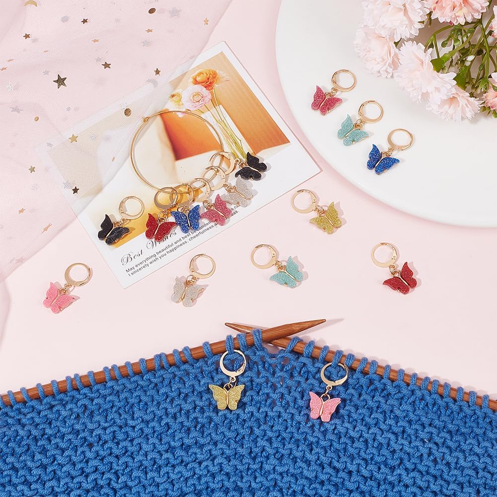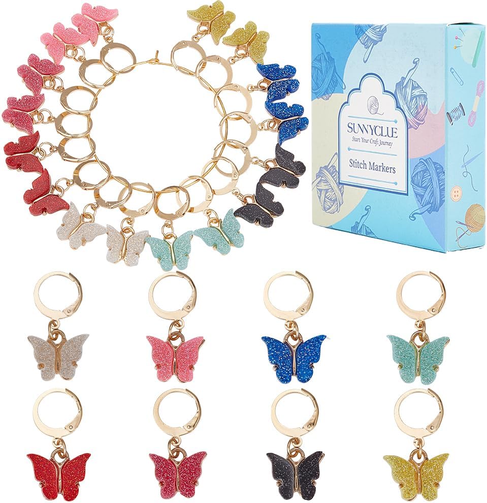 SUNNYCLUE 1 Box 16Pcs 8 Colors Knitting Crochet Markers Knitting Markers Charms Spring Butterfly Crochet Leverback Charms for Weaving Sewing Needleworks Women Adults DIY Supplies
