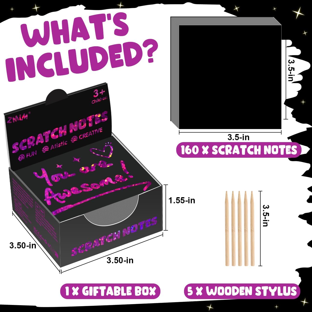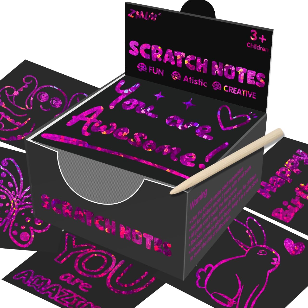 - Rose Red Holographic Scratch Art Mini Notes: Our scratch art paper with 160 sheets of holographic scratch paper note cards (Size: 3.5*3.5inch /8.5*8.5cm) and 5 Styluses(3.5inch/8.5cm). Super Bulk kids art craft kits for fun way to doodle, leave notes, write Lists and and create cool illustrations and designs. Both kids and adults love exercising their imaginations with this bulk art craft Christmas gift