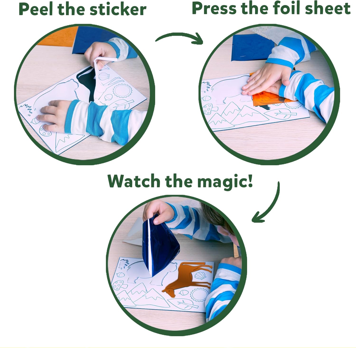 - FOIL ART & CRAFT ACTIVITY: Let your child's imagination soar with this magical, mess-free foil art and craft activity. They can create stunning pictures featuring lions, horses, whales and more, sparking hours of creative play!