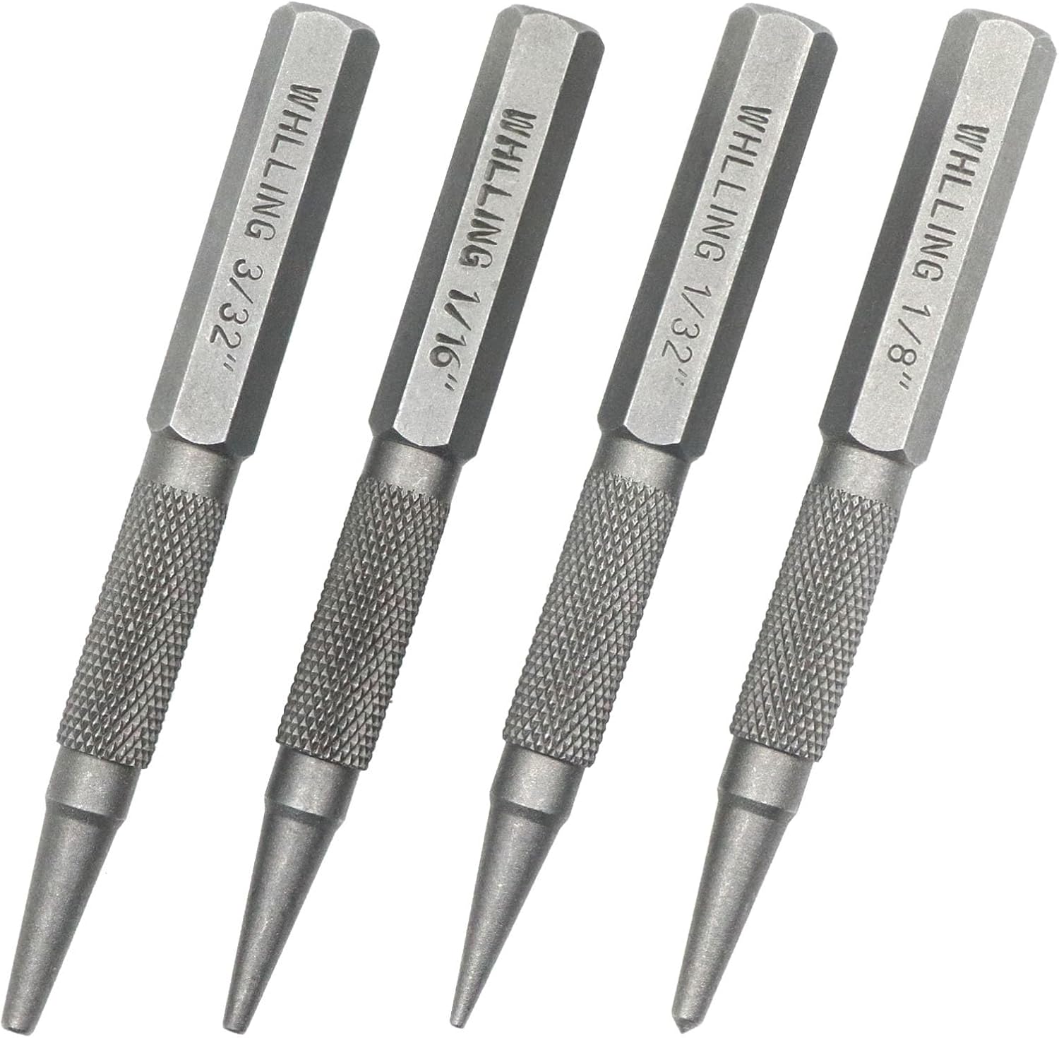 - ➤4 Piece Set Nail Setter Punch and Center Punch Set . INCLUDES: 1/32" Nail Kit, 1/16" Nail Kit, 3/32" Nail Kit, 1/8" Center Punch