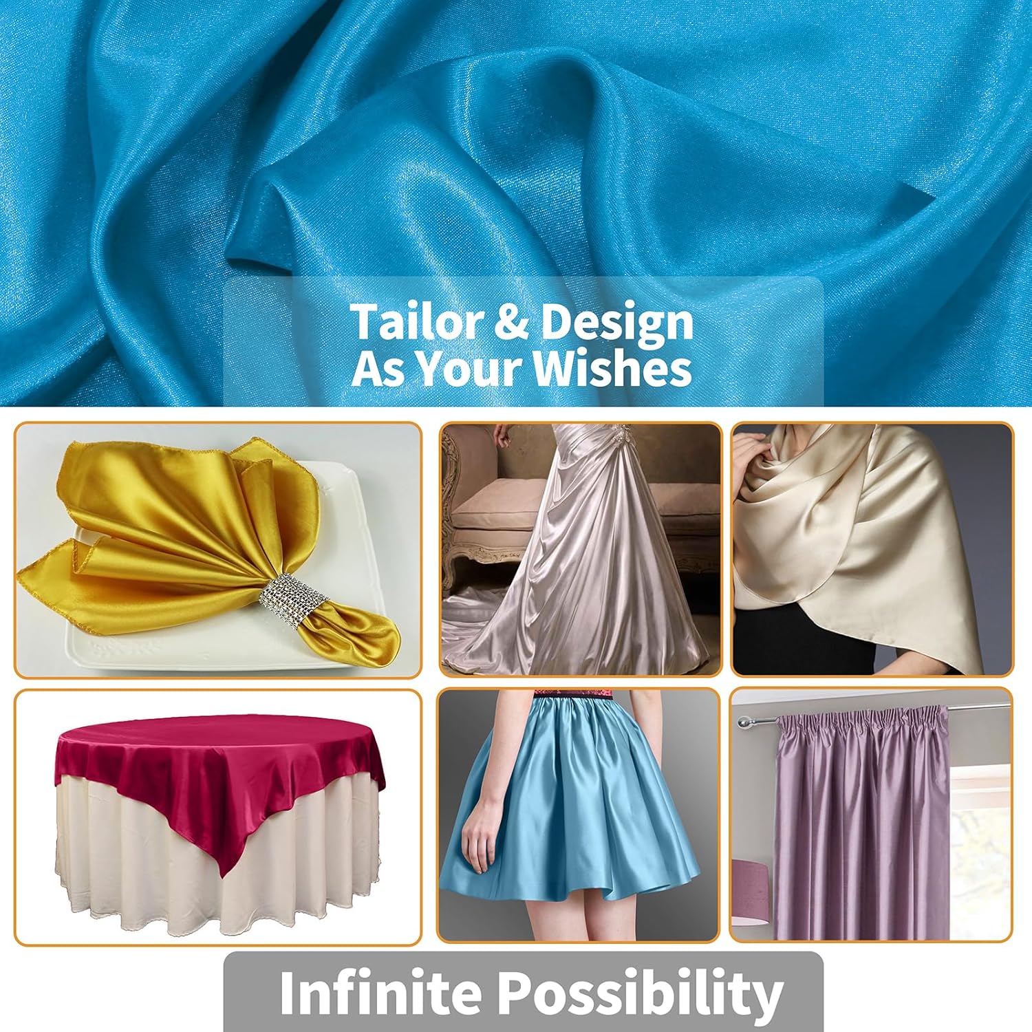- Versatile Fabric: With elegant and luxurious touch, the satin fabric is a decorative addition to wedding, birthday, themed, house parties. One fabric completes various projects.