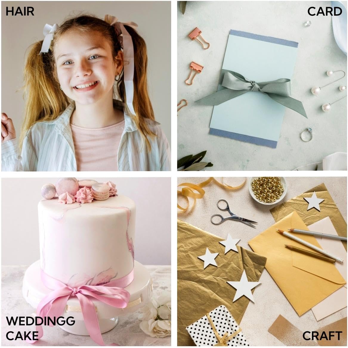 - 【Ribbon for Crafts】: The wrapping ribbon with nice stitched edges looks luxurious and is suitable for gift wrapping, packages, presents, crafts making, tying bows, hair, sewing, floral wreath and bouquet, invitation or thank you cards, DIY projects, graduation lei. You can use the beautiful ribbon to create floral wreaths and bows to highlight your items and add an exquisite touch.