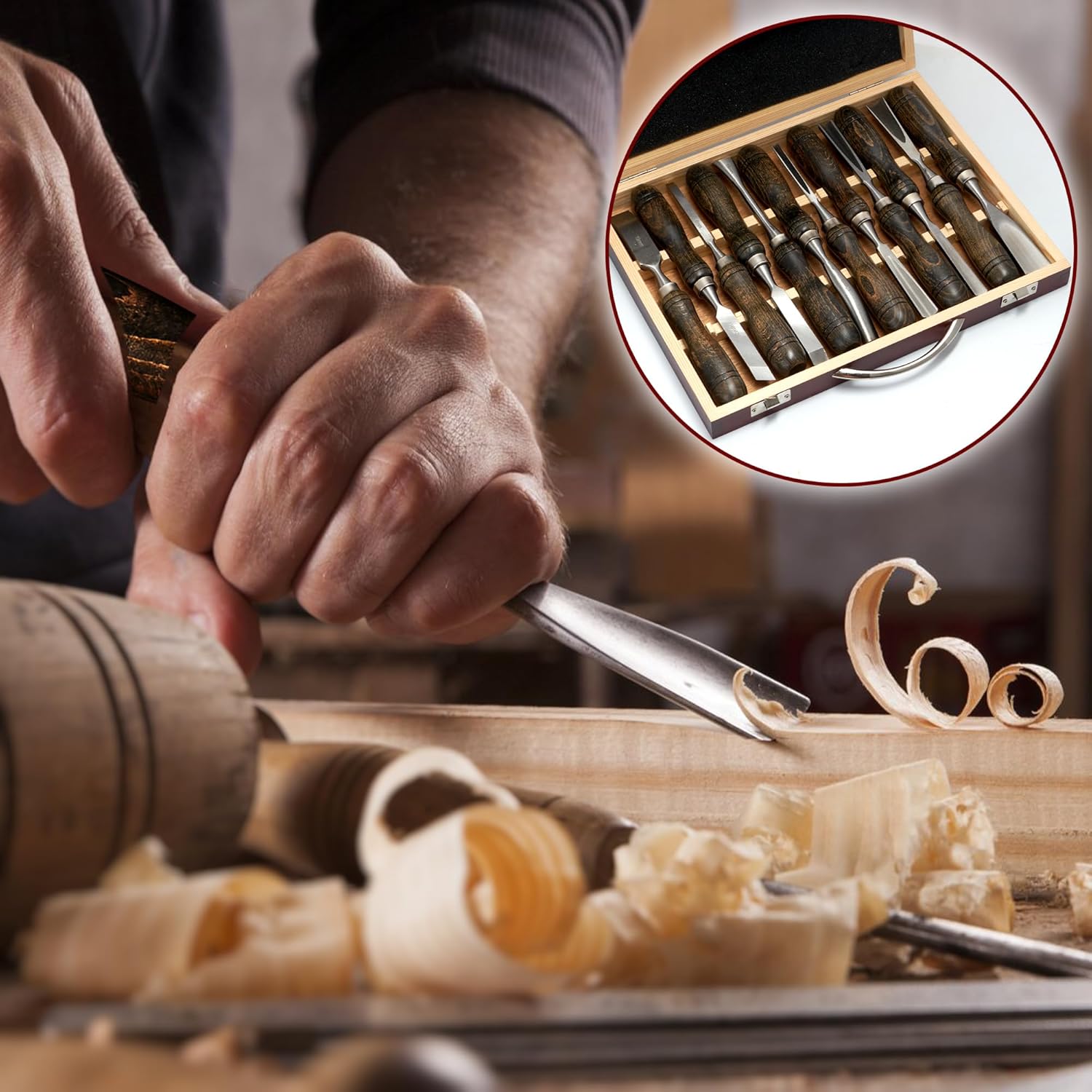 - WOODEN CASE - This set of wood chisel woodworking tools is packed in a fine wooden box (31. 8X26X4.2CM). In this way, you can store tools safely and securely after woodworking, and all tools are conveniently accessible when you activate a lathe.